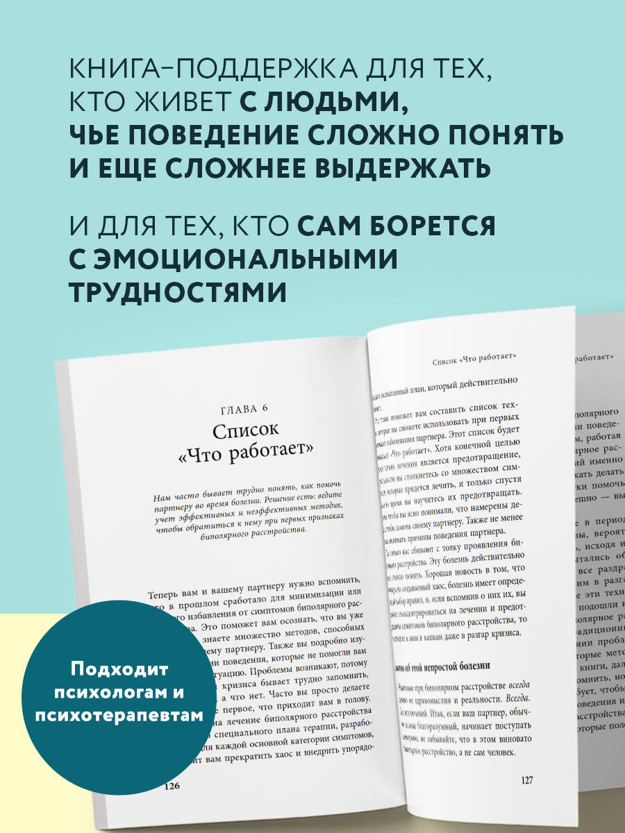 В 31 год у Джули Фаст диагностировали биполярное расстройство, с которым на тот момент времени она жила уже 14 лет. Отсутствие необходимых лекарств, нездоровые отношения в семье, проблемы с работой и денежные трудности чуть не сломили ее, но пережитые трудности стали источником вдохновения. Этот опыт позволил ей стать востребованным специалистом в области психического здоровья и автором международных бестселлеров. Книга в первую очередь адресована людям, страдающим от последствий данного заболевания, и их партнерам. С ее помощью вы научитесь преодолевать кризисные ситуации в отношениях и находить баланс между заботой о близком человеке и самом себе. Предлагаемый комплексный подход к лечению позволит взять симптомы расстройства под контроль. Из этой книги вы узнаете: - как вовлечь партнера в работу над вашими отношениями и его состоянием; - в чем не стоит винить близкого человека; - как вести себя в периоды обострений и суметь их предотвратить; - почему брать всю ответственность на себя - не лучшая стратегия; - как позаботиться о себе в таких отношениях.| Издательство | ООО "Издательство "Эксмо" |