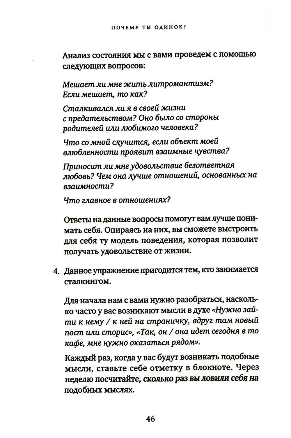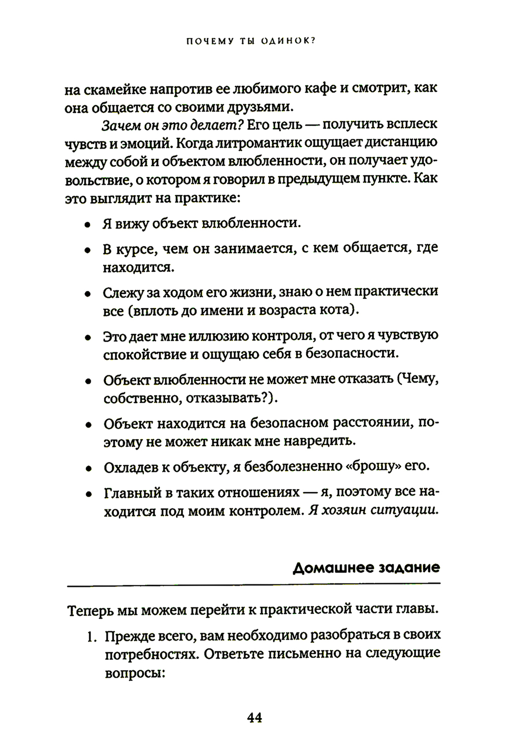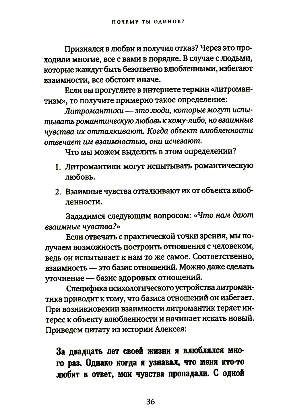 Проблема одиночества в наши дни актуальна, как никогда ранее. Одни боятся близости и взаимных чувств, поэтому даже не пытаются искать партнера, другие не могут обрести гармонию с любимым человеком, потому что пережили травмирующее расставание. Несмотря на разный жизненный опыт людей, результат одинаковый - они одиноки. Что же нам мешает строить счастливые отношения и чувствовать себя в них комфортно? У одиночества может быть миллион разных причин, но психологические преграды, которые мешают наладить отношения, схожи. Дмитрий Антипов разобрал двенадцать историй сложных отношений, в каждой из которых можно узнать себя, переосмыслить свою боль и вместе с автором проанализировать причины неудач. В конце каждой главы вам будет предложено задание, с помощью которого вы сможете проработать актуальные для вас проблемы.| Издательство | Портал |