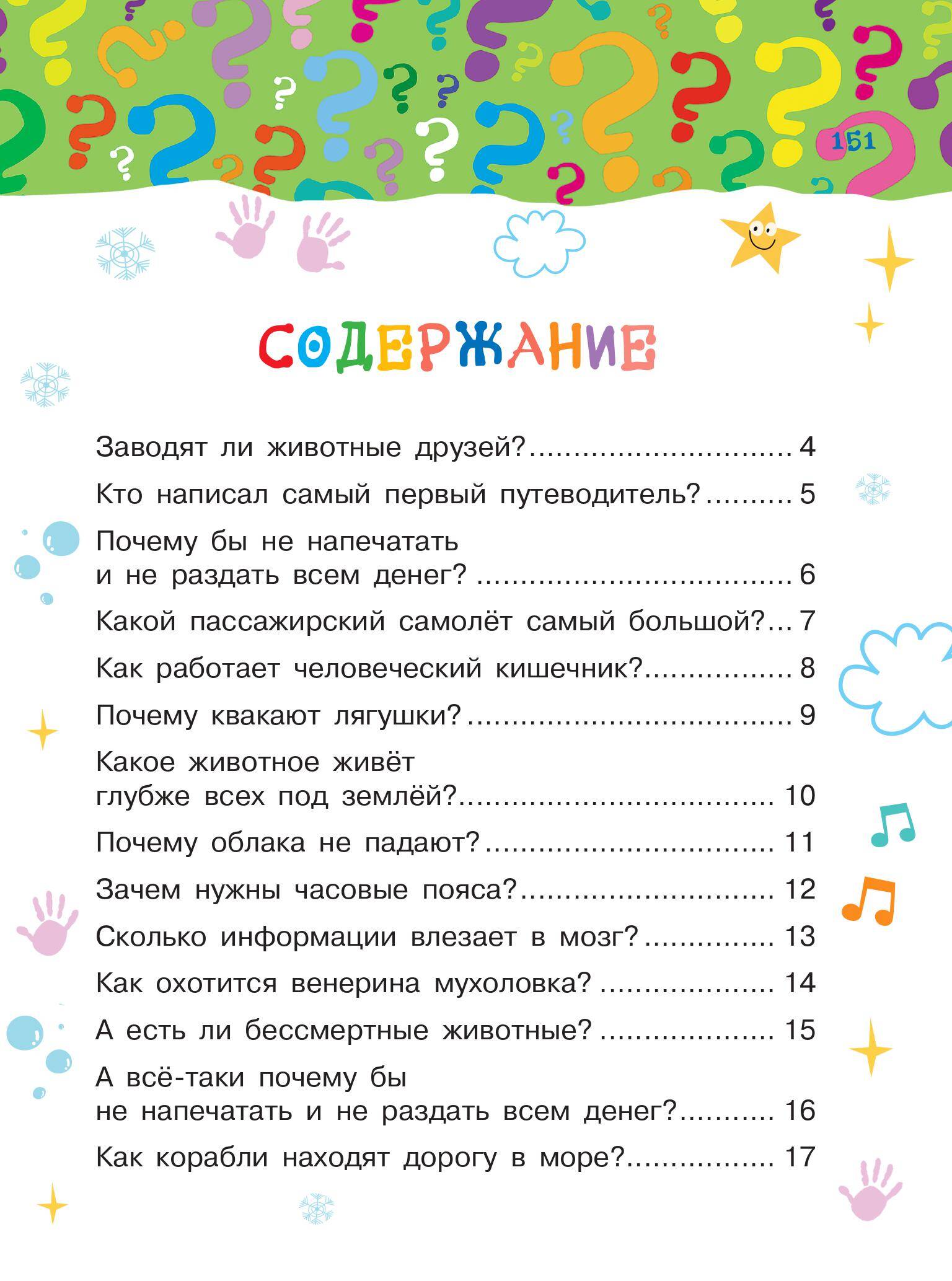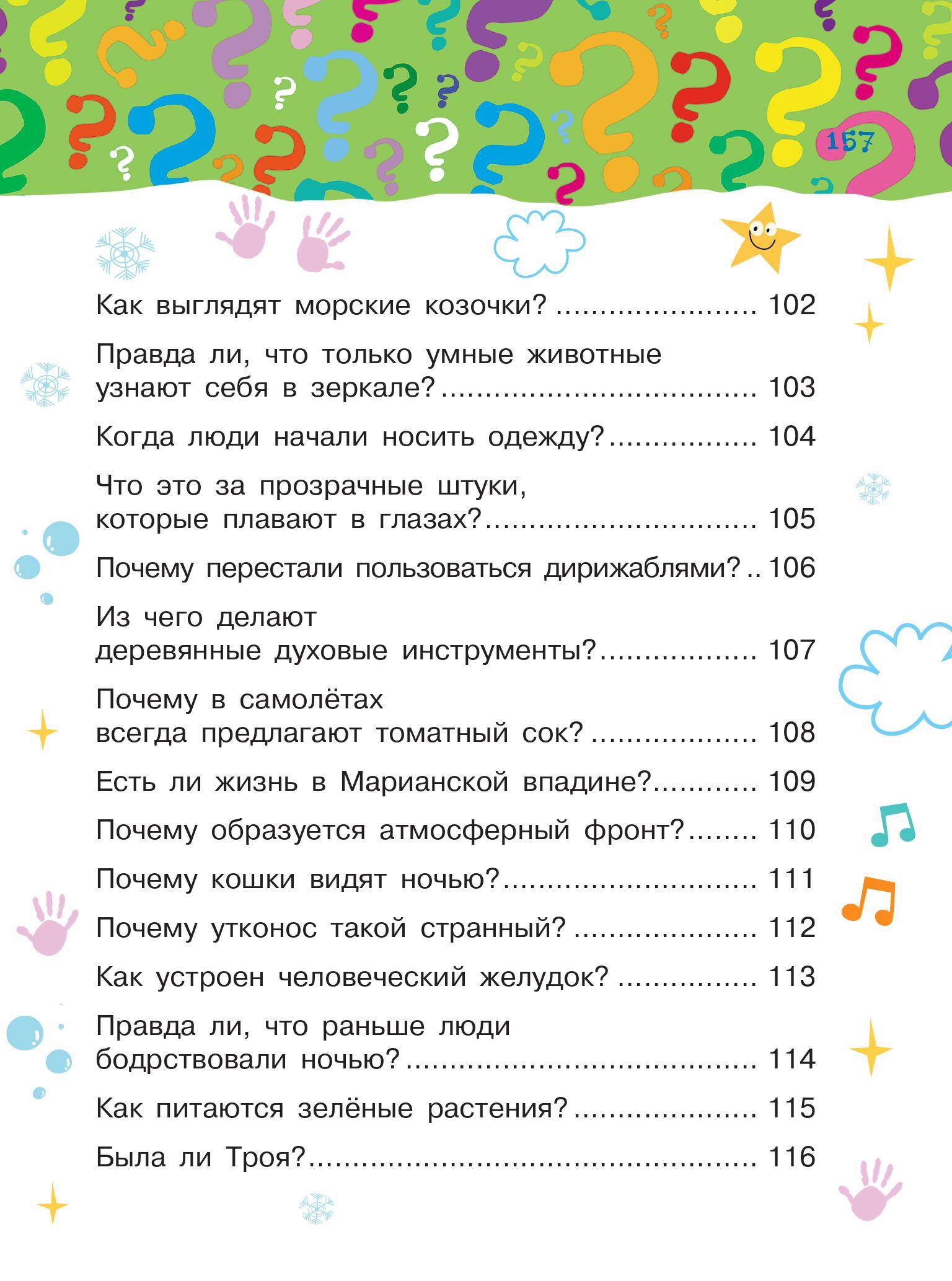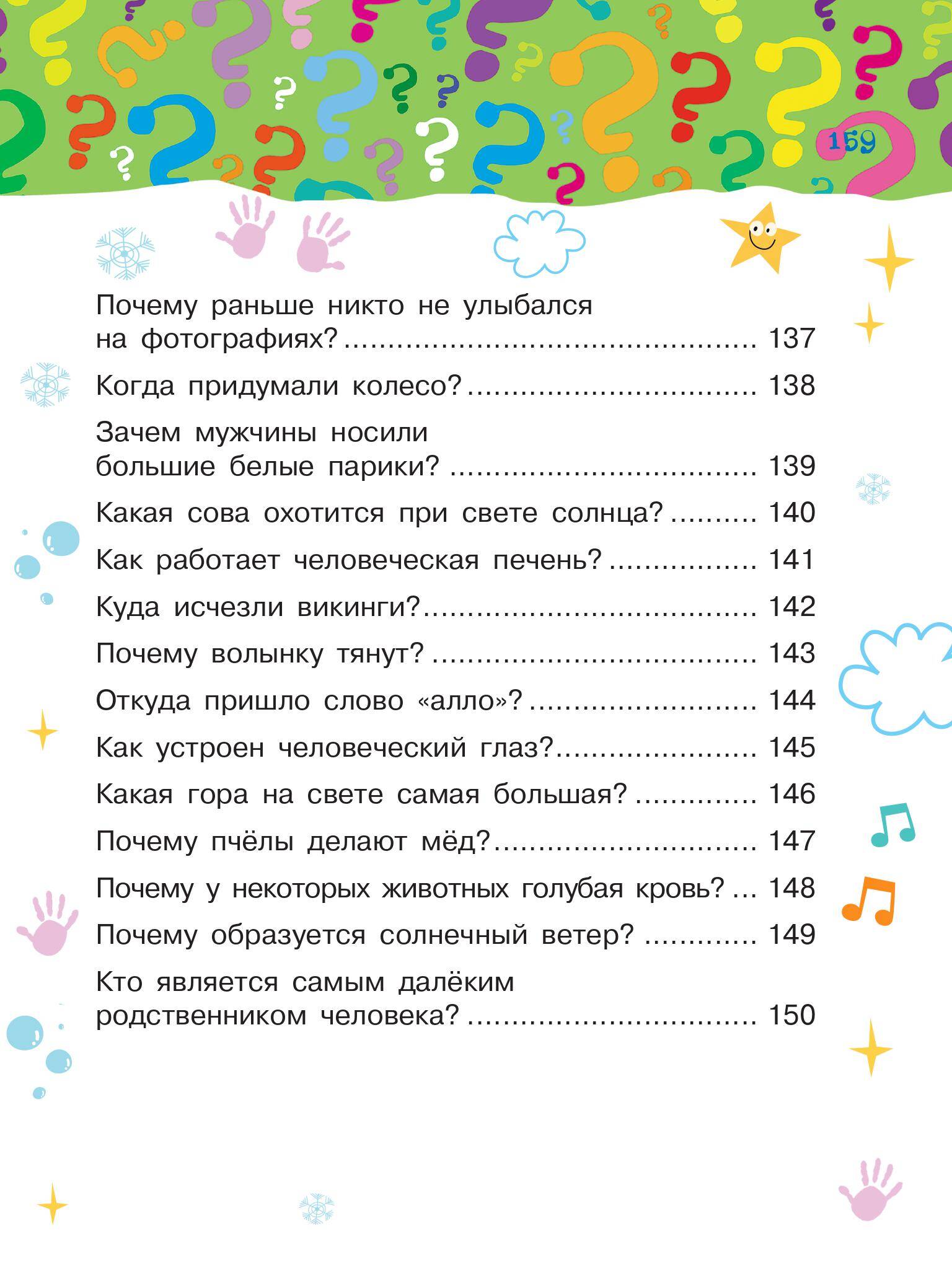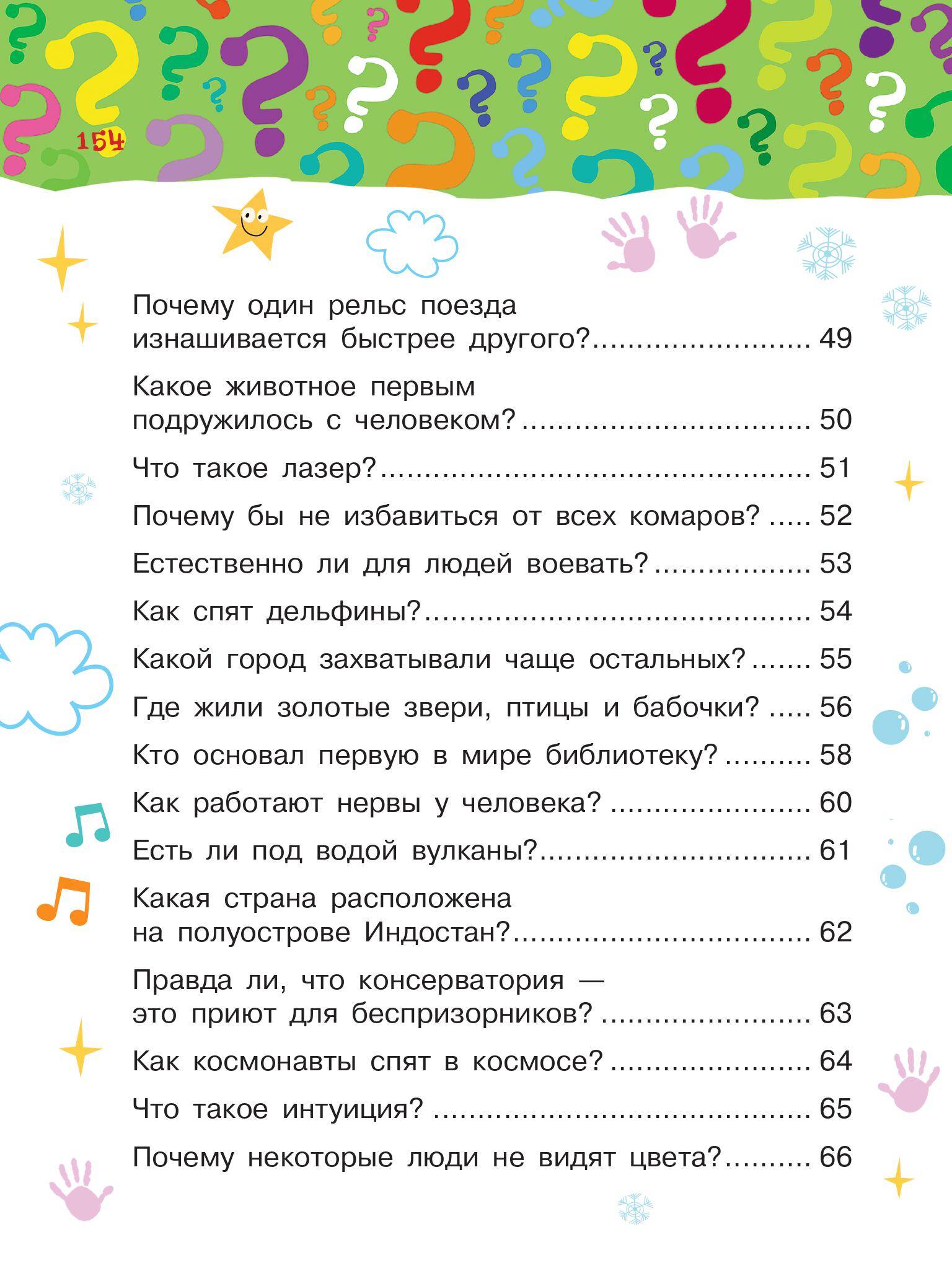 Открыв эту книгу, вы получите ответы на все ваши вопросы об окружающем мире. Почему вода в океанах такая солёная? Каким был первый торт? Почему у людей всего два глаза? Книга сделана в формате один вопрос и ответ на страницу, благодаря чему информация усваивается легко и просто. Вы узнаете много нового о физике, биологии, химии, истории, астрономии и даже сможете рассказать своим друзьям, кто и когда придумал первое мороженое. Для среднего школьного возраста.