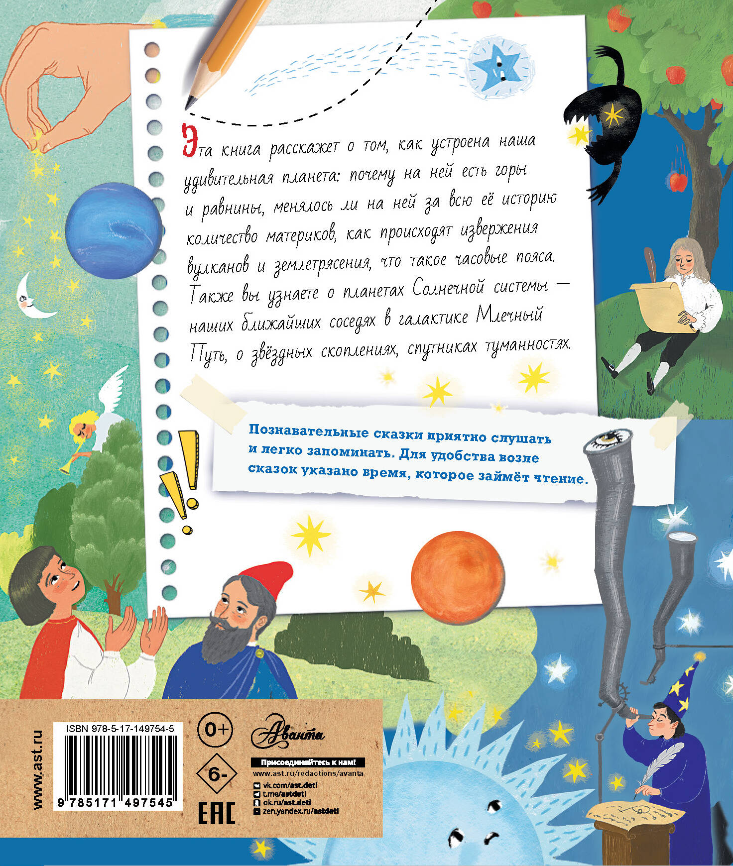 В этой книге собраны познавательные истории авторов - популяризаторов науки для детей Марины Викторовны Собе-Панек, Анастасии Мещеряковой и Дарьи Мультановской - о нашей удивительной планете Земля, о далёких звёздах, прекрасных туманностях и таких разных, порой очень опасных, галактиках. Вы узнаете, как люди представляли себе мир в древности, почему происходят землетрясения и извержение вулканов, как найти на карте или глобусе меридианы и параллели, что такое часовые пояса, какого размера Солнце и ещё многое-многое другое. Для удобства около длинных сказок указано время, которое потребуется для их прочтения. Для младшего школьного возраста.| Издательство | АСТ |