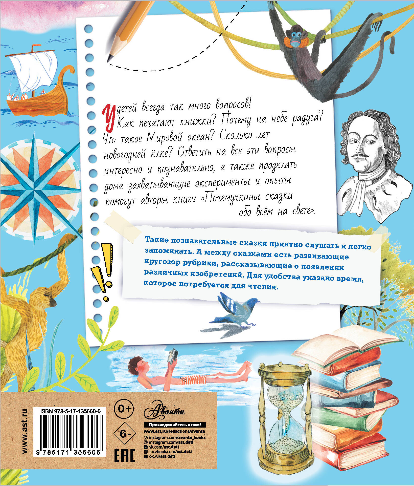 Как печатают книжки? Почему на небе радуга? Что такое Мировой океан? Сколько лет новогодней ёлке? У детей всегда так много вопросов! Ответить на них интересно и познавательно, а также проделать дома захватывающие эксперименты и опыты, помогут авторы книги "Почемучкины сказки обо всем на свете". Ответы в форме познавательной сказки приятно слушать и легко запоминать. Между сказками есть развивающие кругозор рубрики, рассказывающие обо всём на свете. Для удобства указано время, которое потребует чтение сказки. Для младшего школьного возраста.