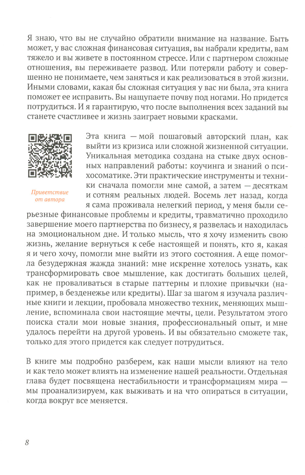 Как почувствовать внутреннее спокойствие, тишину, гармонию? Когда вам хорошо. Вы уверены в себе. Это состояние можно назвать счастьем. А точнее, внутренней опорой. И достигнуть этой безмятежности мечтает абсолютно каждый человек. Возможно, в этом все ищут тот самый Смысл. Смысл в спокойствии и почве под ногами. Эта книга - универсальный помощник в поисках своего личного счастья и спокойствия. Она поможет вам переосмыслить пережитый опыт и использовать его для личного развития. В книгу включены простые, но действенные и эффективные упражнения, для которых понадобятся только лист бумаги и ручка. Будьте автором своей жизни и напишите ваш сценарий с нуля из состояния полноценности, уверенности, радости и энергии.