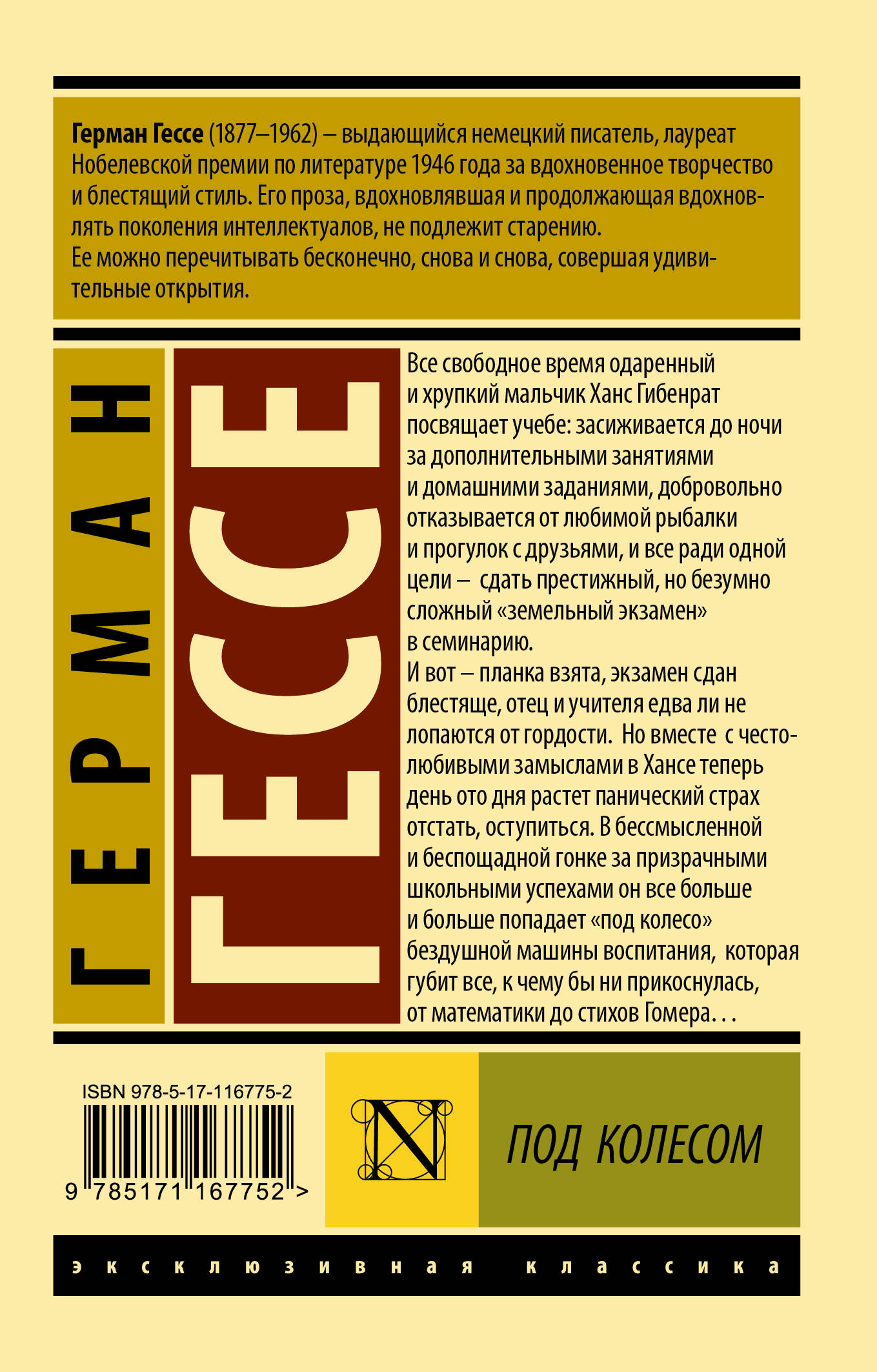 Все свободное время одаренный и хрупкий мальчик Ханс Гибенрат посвящает учебе: засиживается до ночи за дополнительными занятиями и домашними заданиями, добровольно отказывается от любимой рыбалки и прогулок с друзьями, и все ради одной цели - сдать престижный, но безумно сложный "земельный экзамен" в семинарию. И вот - планка взята, экзамен сдан блестяще, отец и учителя едва ли не лопаются от гордости. Но вместе с честолюбивыми замыслами в Хансе теперь день ото дня растет панический страх отстать, оступиться. В бессмысленной и беспощадной гонке за призрачными школьными успехами он все больше и больше попадает "под колесо" бездушной машины воспитания, которая губит все, к чему бы ни прикоснулась, от математики до стихов Гомера…| Издательство | ИЗДАТЕЛЬСТВО "АСТ" |