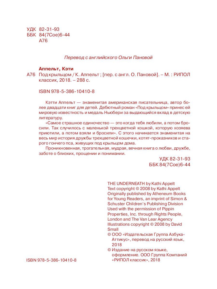 Кэтти Аппельт - знаменитая американская писательница, автор более двадцати книг для детей. Дебютный роман «Под крыльцом» принес ей мировую известность и медаль Ньюбери за выдающийся вклад в детскую литературу.