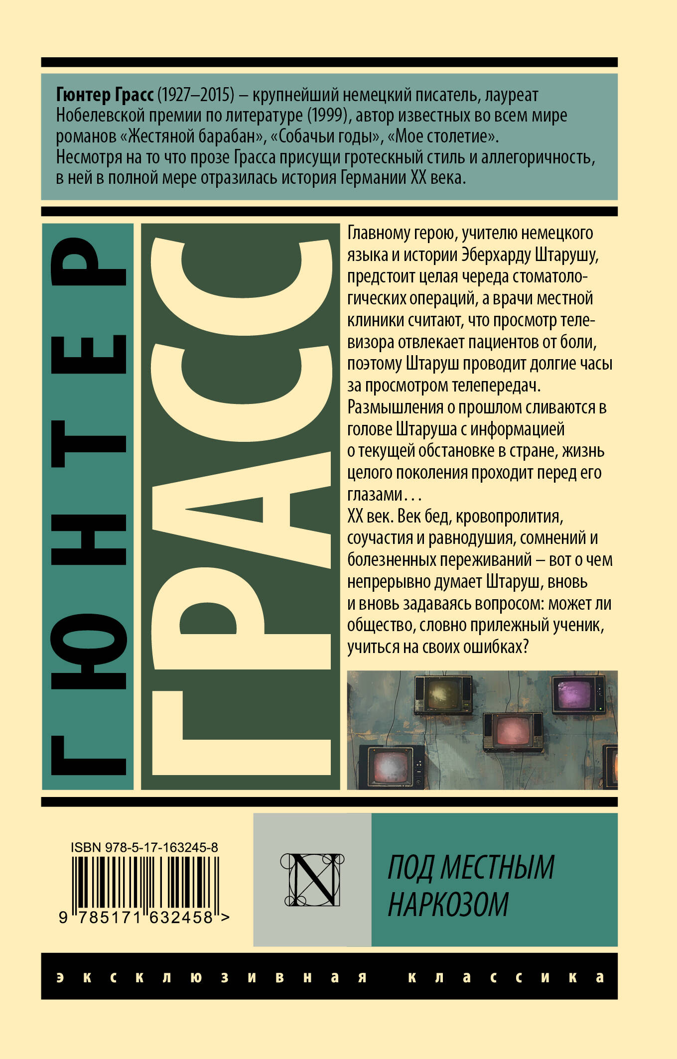 Главному герою, учителю немецкого языка и истории Эберхарду Штарушу, предстоит целая череда стоматологических операций, а врачи местной клиники считают, что просмотр телевизора отвлекает пациентов от боли, поэтому Штаруш проводит долгие часы за просмотром телепередач. Размышления о прошлом сливаются в голове Штаруша с информацией о текущей обстановке в стране, жизнь целого поколения проходит перед его глазами… XX век. Век бед, кровопролития, соучастия и равнодушия, сомнений и болезненных переживаний - вот о чем непрерывно думает Штаруш, вновь и вновь задаваясь вопросом: может ли общество, словно прилежный ученик, учиться на своих ошибках?| Издательство | Издательство "АСТ" |