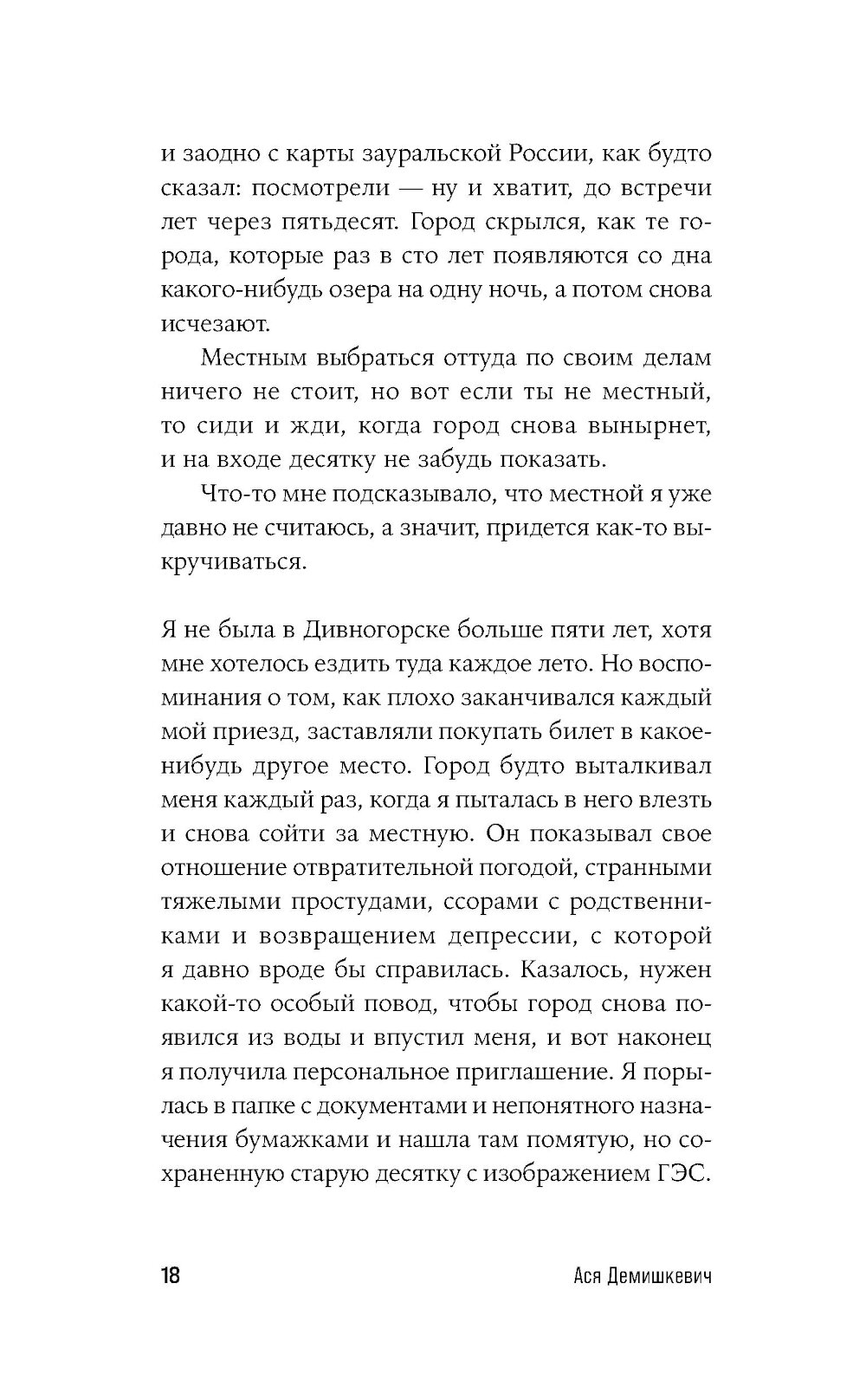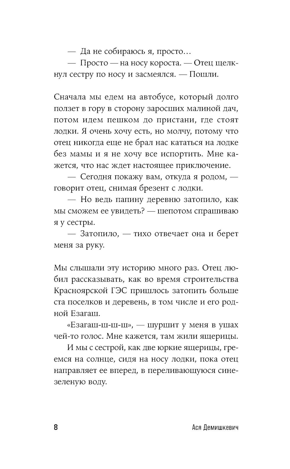 Отец Киры - переселенец из затопленной деревни, на месте которой возникло Красноярское водохранилище. Единственное, о чем он с интересом говорит с дочерью, - это о своем утраченном доме и о могилах предков, оставшихся под водой. Кира вырастает, уезжает из дома и меняет город за городом, нигде не находя себе места. После смерти отца она возвращается, чтобы помочь сестре разобрать его вещи, и сталкивается со страшной находкой. Кира пытается понять, что делать с этим разрушающим знанием, и разобраться, есть ли в ней самой та тьма, которая была в ее отце.| Издательство | Альпина нон-фикшн |