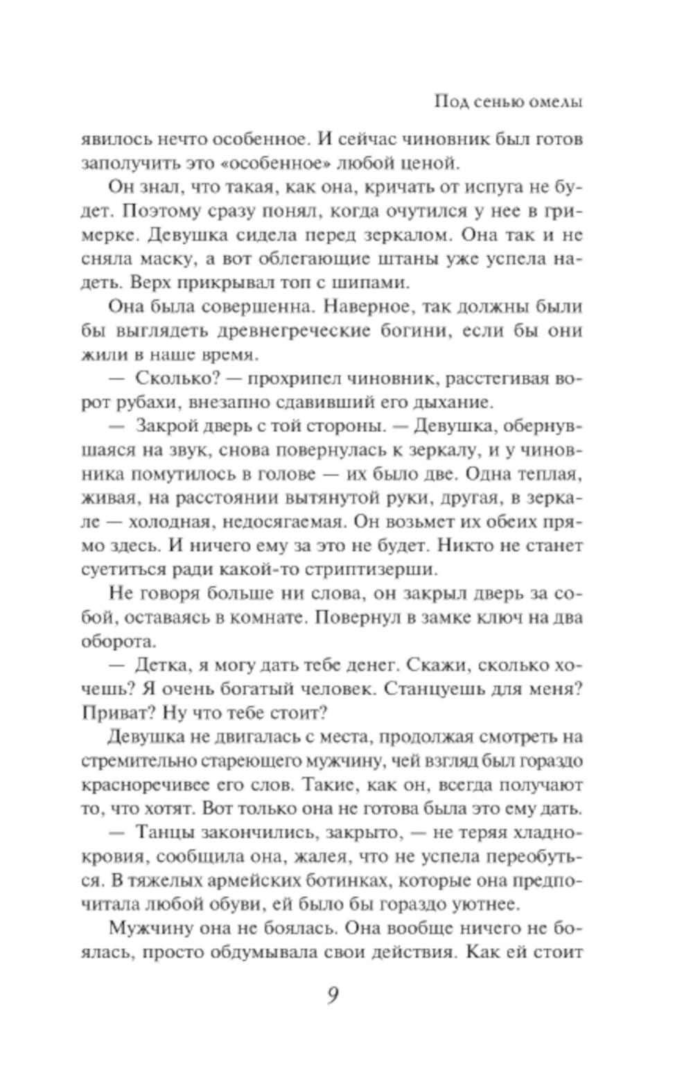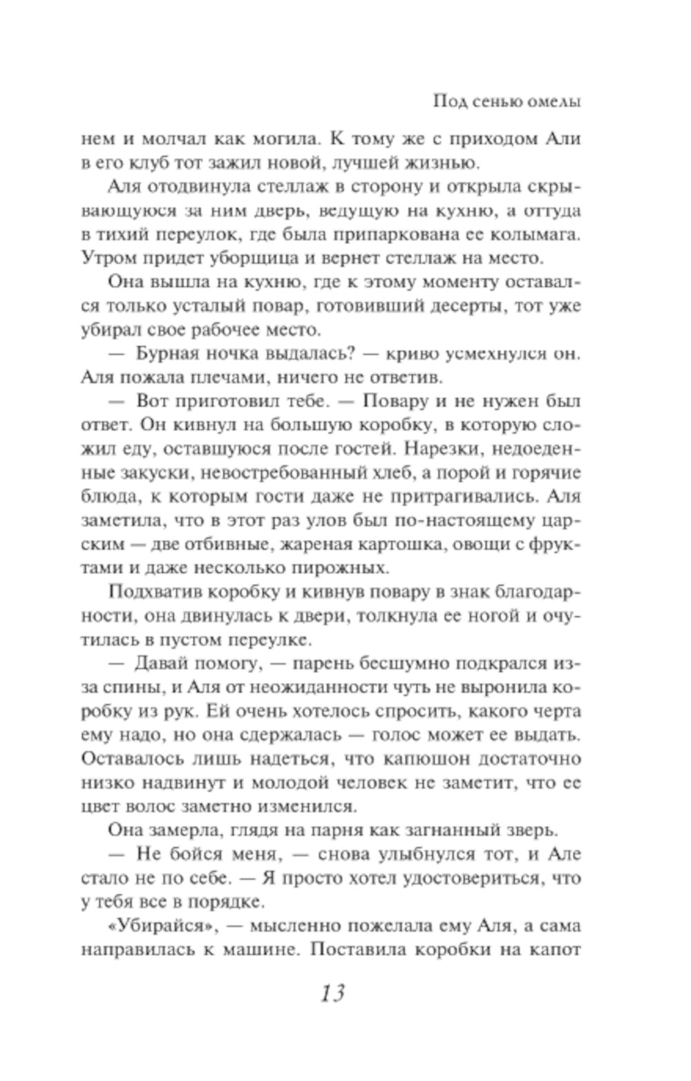 «Под сенью омелы» - это увлекательный остросюжетный роман, в центре которого находится Алевтина Орлова, бывший следователь, а ныне специалист по связям с общественностью Управления МВД. Аля переживает личную драму - у нее тяжело болен муж, и она готова на все, чтобы спасти его. Оказавшись втянутой в раскрытие преступления - смерть известного промышленника, - она планирует провести собственное расследование, написать сенсационную статью и заработать денег. Вскоре Аля понимает, что к убийству имеют отношение близкие ей люди. Конец романа ставит читателя перед непростым вопросом: «Может ли добро победить зло и что такое зло на самом деле?»