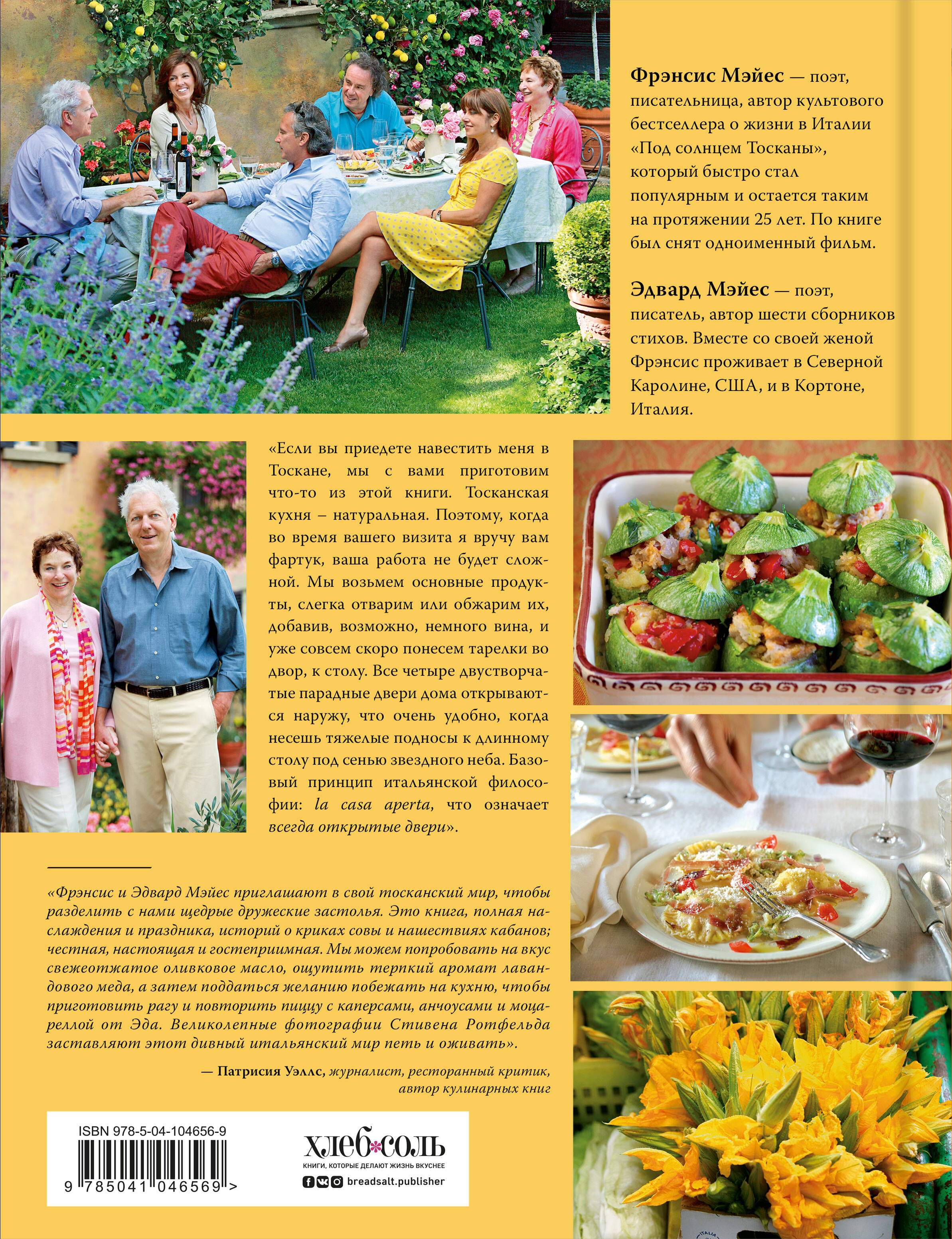 «Если вы приедете навестить меня в Тоскане, мы с вами приготовим что-то из этой книги. Тосканская кухня - натуральная. Поэтому, когда во время вашего визита я вручу вам фартук, ваша работа не будет сложной. Мы возьмем основные продукты, слегка отварим или обжарим их, добавив, возможно немного вина, и уже совсем скоро понесем тарелки во двор, к столу. Все четыре двустворчатые парадные двери дома открываются наружу, что очень удобно, когда несешь тяжелые подносы к длинному столу под сенью звездного неба. Базовый принцип итальянской философии: la casa aperta, что означает всегда открытые двери». - Фрэнсис Мэйес Фрэнсис Мэйес, автор популярного бестселлера «Под солнцем Тосканы», вместе со своим мужем Эдвардом уже много лет считают Тоскану своим домом. И для них тосканская еда - это символ домашнего уюта, праздничных застолий и душевных встреч с друзьями. Они собрали рецепты, которые копили десятилетиями, и написали книгу, полную наслаждения, радости, счастья и тосканского солнца. Книга выстроена как традиционный тосканский ужин: вы начнете с антипасти, а закончите десертом и дижестивом в компании хороших друзей. Авторы делятся рецептами более 150 своих любимых блюд, советами и рекомендациями, а также атмосферными фотографиями и описаниями тосканских кулинарных традиций.