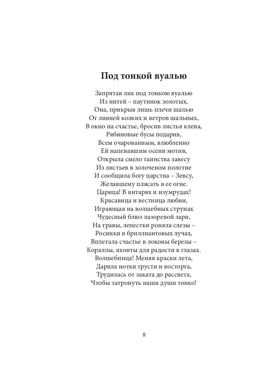 В сборнике представлена поэзия на разные темы, главной из которых является любовь к родному краю, отчему дому, родителям, между мужчиной и женщиной. Часть стихов посвящена дружбе - неотъемлемой части любви.