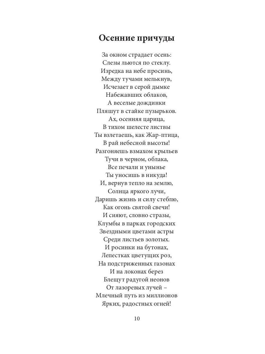Вниманию читателей автор предлагает стихи на патриотическую тему, о проблемах молодёжи и пожилых людей и стихи на философскую тему и о природе в разные времена года.