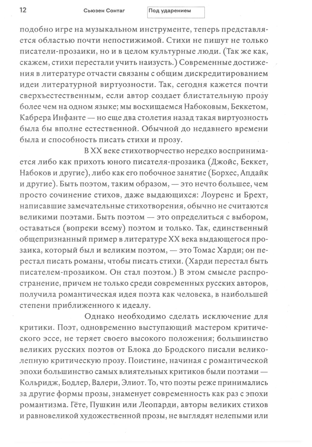 В этот последний изданный при жизни Сьюзен Сонтаг сборник ее эссе вошло более сорока текстов, написанных и опубликованных с 1982 по 2001 год. Он представляет собой серию, казалось бы, разрозненных критических работ, объединенных в три раздела: «Чтение», где Сонтаг утверждает новые литературные каноны - произведения Машаду де Ассиза и Роберта Вальзера, - «Взгляд», в котором писательница дает проницательные и экспрессивные комментарии о фотографии и кинематографе, и «Там и здесь» - ряд заметок, посвященных рефлексии на тему собственного творческого пути. Но по мере прочтения тексты Сонтаг, неизменно эмоциональные и лирические, складываются в единую картину ее неповторимого видения мира искусства и своего места в нем.| Издательство | Ад Маргинем Пресс |