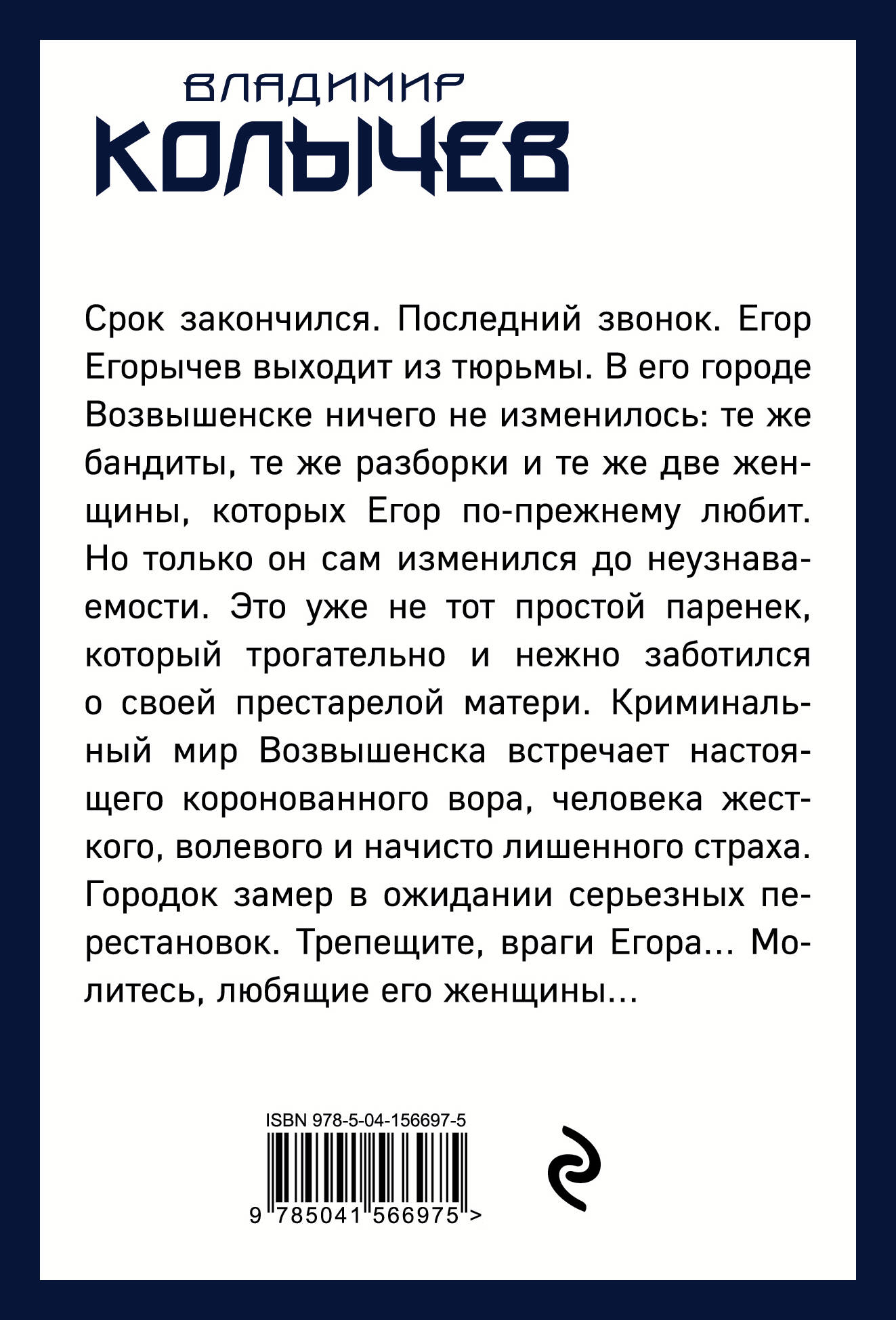 Автор-сила, автор-любовь, автор-ностальгия - по временам, когда миром правили крутые понятия и настоящие мужики. Увлекательные криминальные романы для всех возрастов. Суммарный тираж книг этого автора - более 13 миллионов экземпляров. Срок закончился. Последний звонок. Егор Егорычев выходит из тюрьмы. В его городе Возвышенске ничего не изменилось: те же бандиты, те же разборки и те же две женщины, которых Егор по-прежнему любит. Но только он сам изменился до неузнаваемости. Это уже не тот простой паренек, который трогательно и нежно заботился о своей престарелой матери. Криминальный мир Возвышенска встречает настоящего коронованного вора, человека жесткого, волевого и начисто лишенного страха. Городок замер в ожидании серьезных перестановок. Трепещите, Егора враги… Молитесь, любящие его женщины…| Издательство | ООО "Издательство "Эксмо" |
