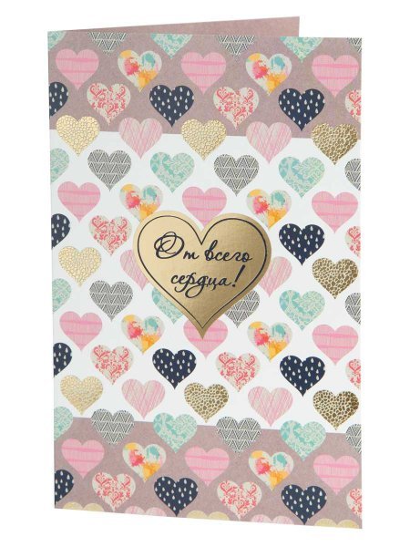 Подарочная открытка От всего серда с книжной раскладкой с технологией из мелованного картона 235 р, цветность 4+4, дизайн с присутствием золотого тиснения, уф лак. 18,3х12,1см арт.82746