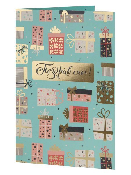 Подарочная открытка Поздравляю с книжной раскладкой с технологией из мелованного картона 235 р, цветность 4+4, дизайн с присутствием золотого тиснения, уф лак. 18,3х12,1см арт.82743