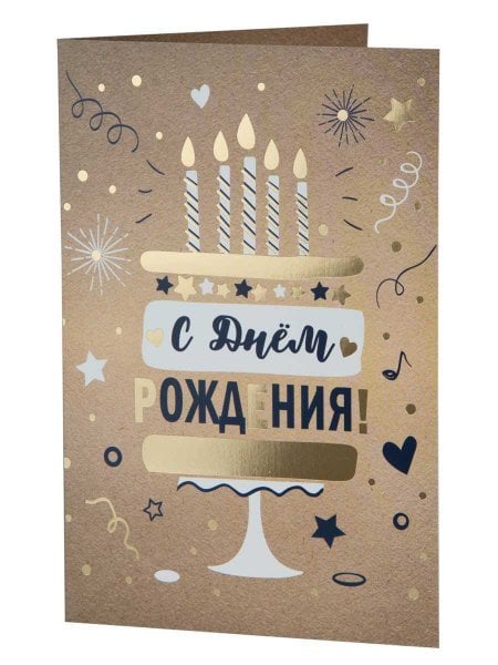 Подарочная открытка Тортик с книжной раскладкой с технологией из мелованного картона 235 р, цветность 4+4, дизайн с присутствием золотого тиснения, уф лак. 18,3х12,1см арт.82745