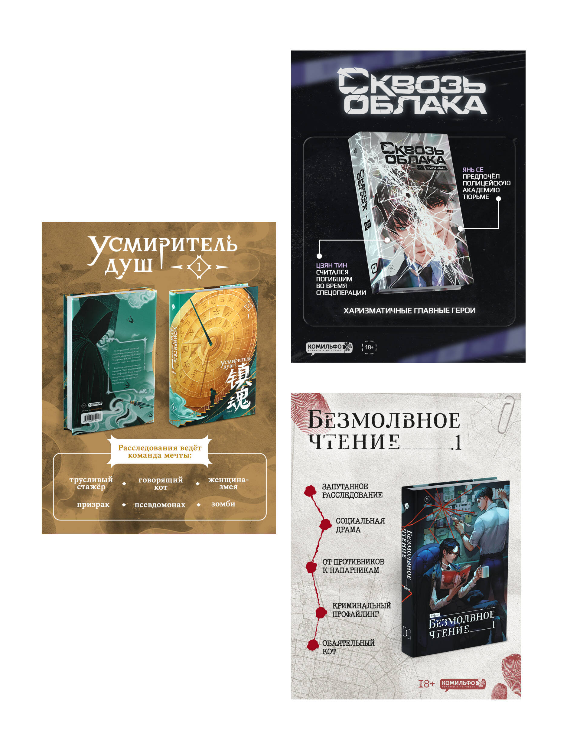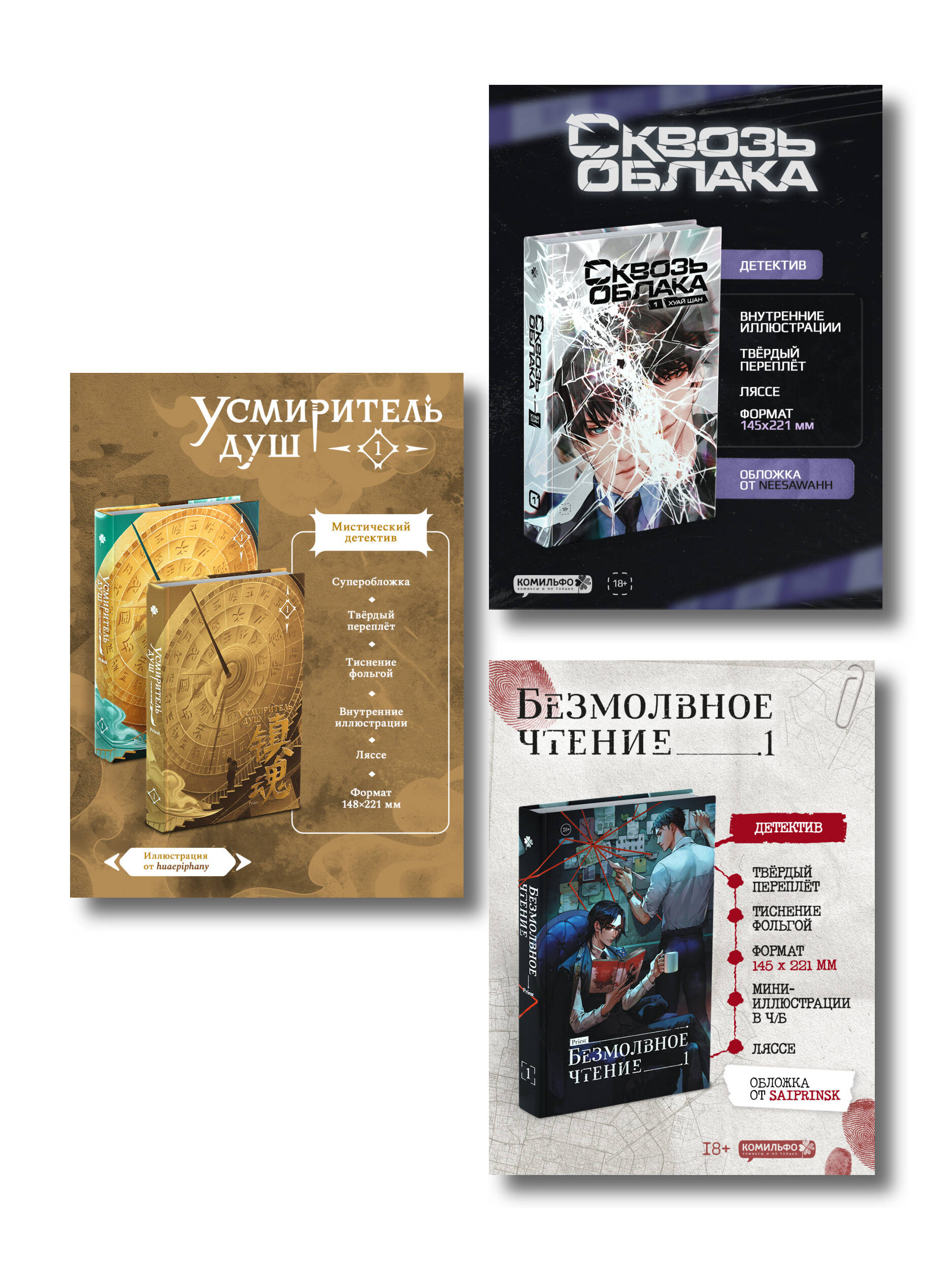 Аннотация: Подарочный набор "Китайские детективы": Безмолвное чтение, Усмиритель душ, Сквозь облака