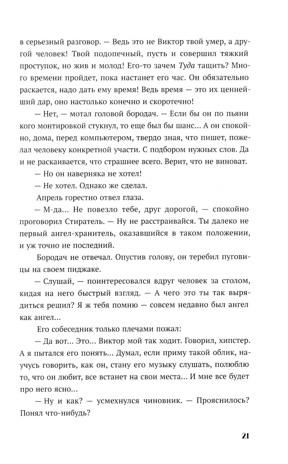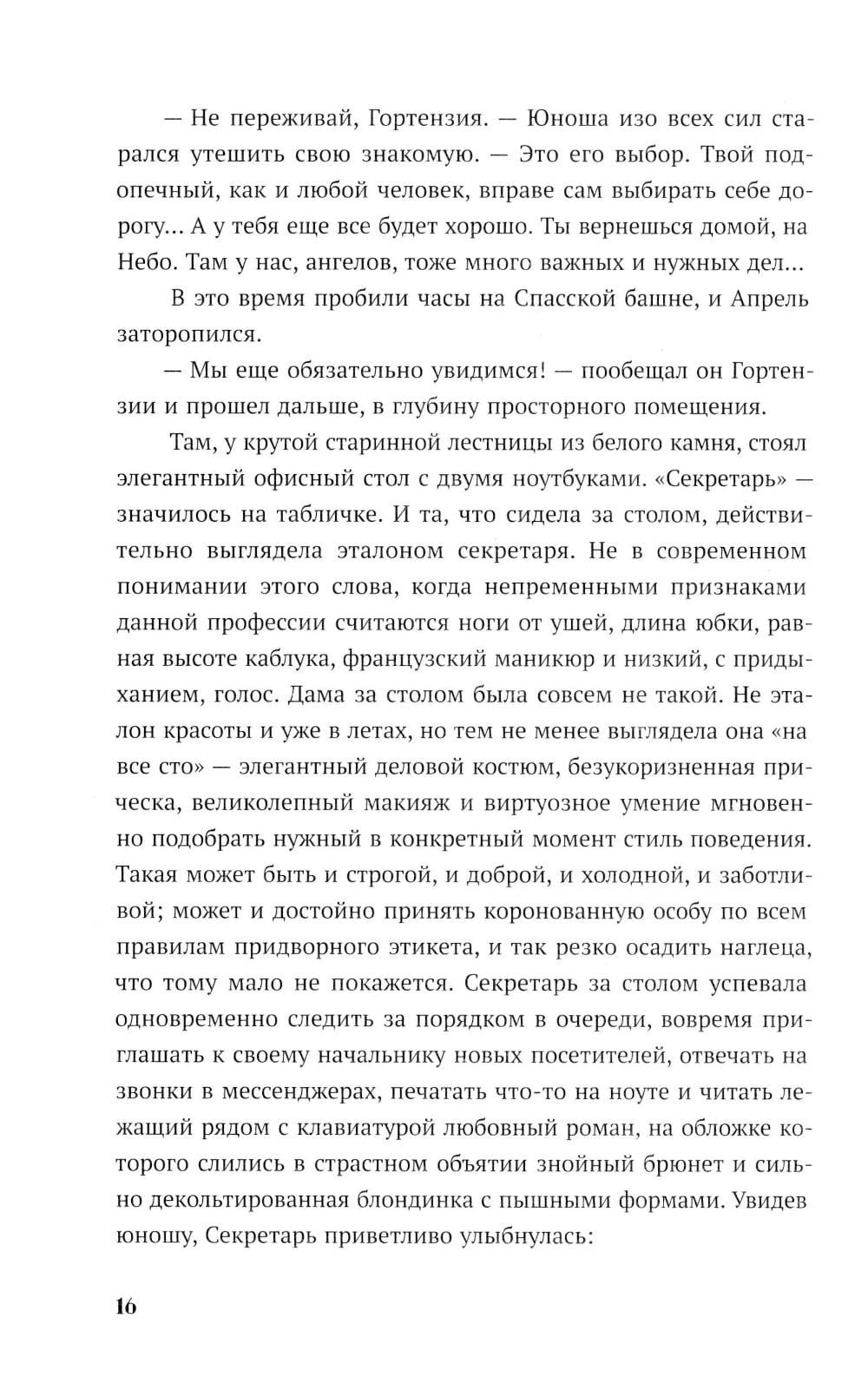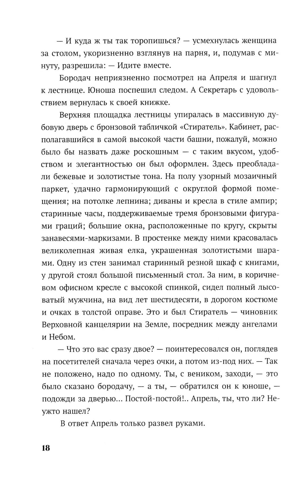 В канун Нового года по украшенной гирляндами Москве бродит юноша, которого никто не замечает. Апрель - ангел, уже много лет блуждающий по Земле в поисках своего человека. Настя- молодая девушка, которую из года в год преследуют неприятности. Она давно перестала верить в чудо и надеяться на лучшую жизнь. Но в тот вечер их пути пересекаются - случайно, как кажется на первый взгляд. Апрель чувствует: эта девушка - та, кого он искал все это время. Но чем ближе они становятся, тем сильнее рушатся границы между Небом и Землей, между долгом ангела и чувствами человека. Пока в небесной канцелярии решают судьбы душ и готовят новых хранителей, Апрель пытается спасти Настю - от отчаяния, одиночества и самой себя. Ради нее он готов нарушить все правила, даже если придется пожертвовать собой.| Издательство | Мангата |
