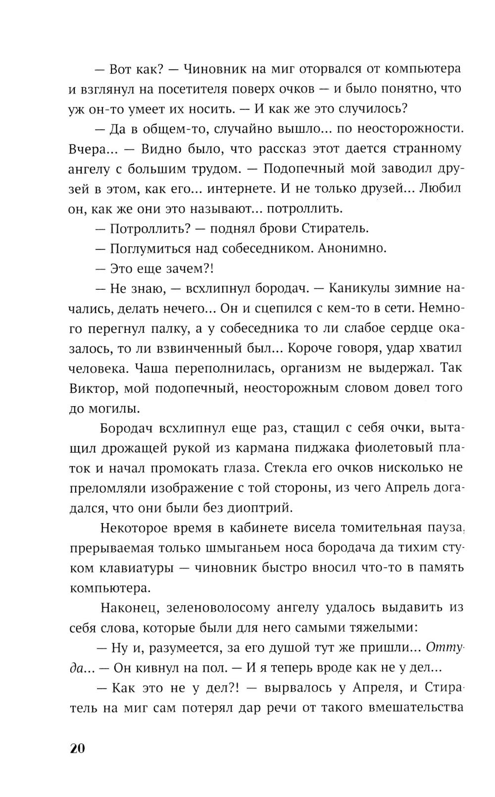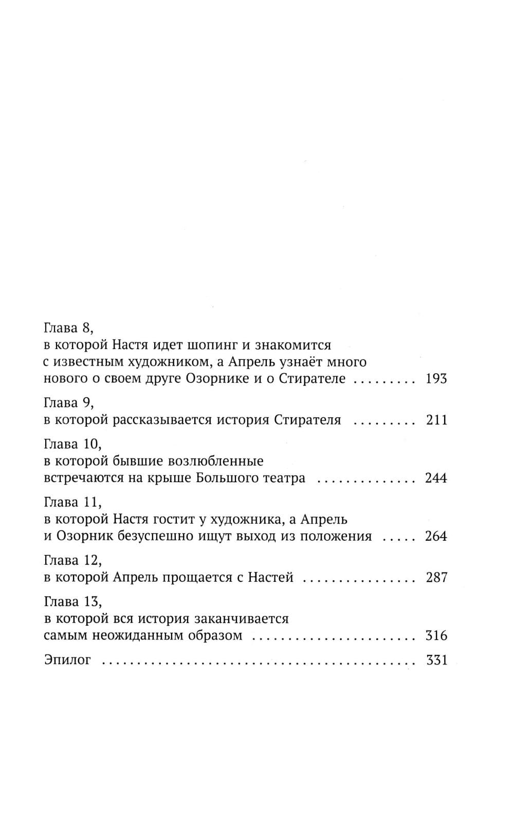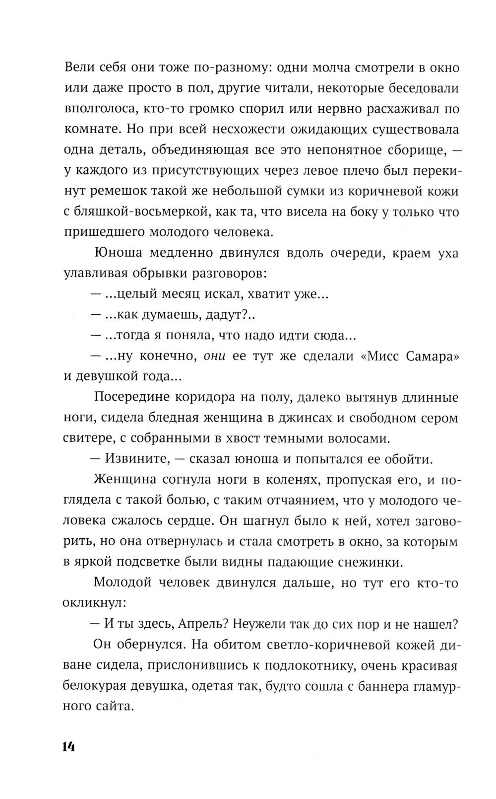В канун Нового года по украшенной гирляндами Москве бродит юноша, которого никто не замечает. Апрель - ангел, уже много лет блуждающий по Земле в поисках своего человека. Настя- молодая девушка, которую из года в год преследуют неприятности. Она давно перестала верить в чудо и надеяться на лучшую жизнь. Но в тот вечер их пути пересекаются - случайно, как кажется на первый взгляд. Апрель чувствует: эта девушка - та, кого он искал все это время. Но чем ближе они становятся, тем сильнее рушатся границы между Небом и Землей, между долгом ангела и чувствами человека. Пока в небесной канцелярии решают судьбы душ и готовят новых хранителей, Апрель пытается спасти Настю - от отчаяния, одиночества и самой себя. Ради нее он готов нарушить все правила, даже если придется пожертвовать собой.| Издательство | Мангата |