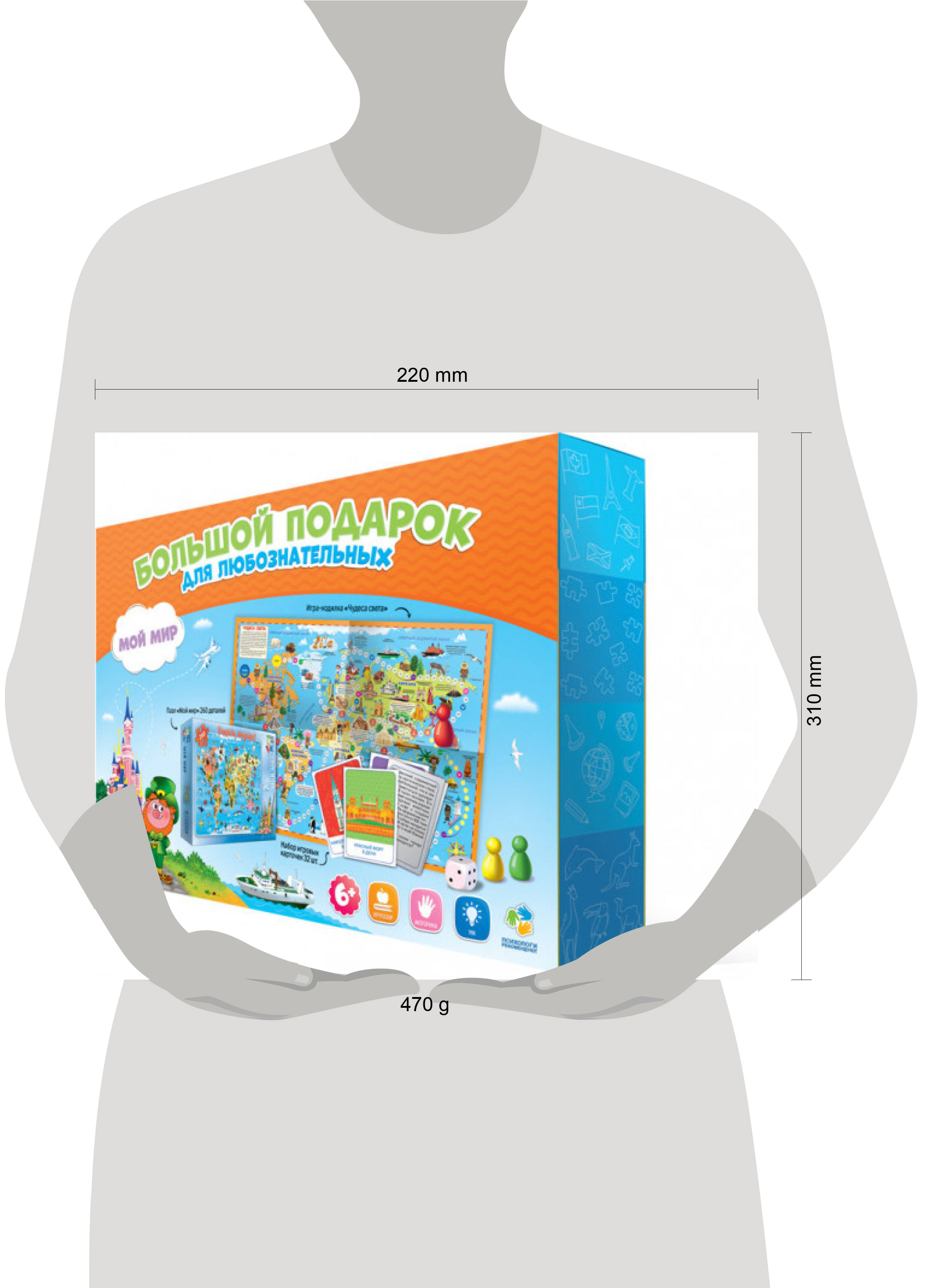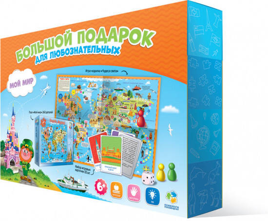 Аннотация: Подарок большой. Мой мир. Пазл 260 дет + Игра-ходилка с фишками + Игровые карточки. ГЕОДОМ