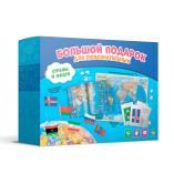 Подарок большой. Страны и флаги. Пазл 260 дет + Атлас с наклейками + Игра-ходилка. ГЕОДОМ
