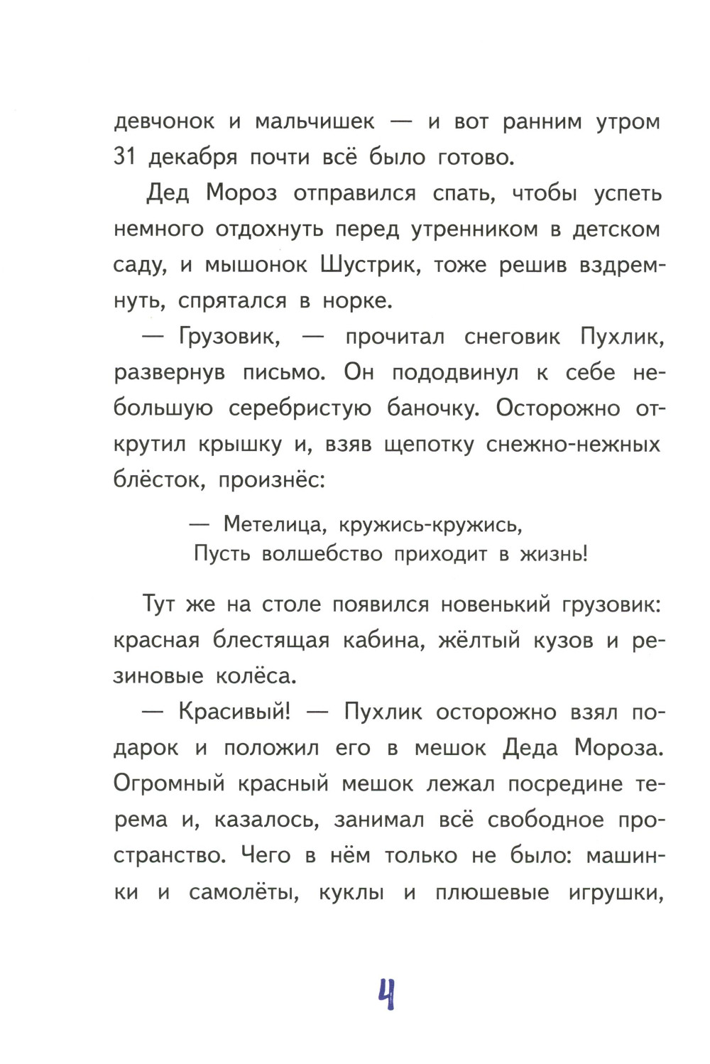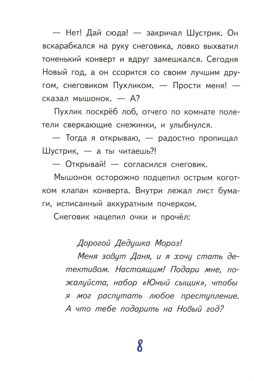 Снеговик Пухлик и мышонок Шустрик уже заканчивали последние приготовления перед Новым годом. Письма от детей перечитали, подарки сложили в большой красный мешок, оставалось только подготовить сюрприз для самого Деда Мороза. Друзья были так увлечены, что и не заметили, как пропала главная ёлка леса. А ведь всем известно, что без неё Новый год не наступит! Поэтому, вооружившись чемоданчиком детектива, наши герои отправляются на поиски похитителя. Им может оказаться кто угодно: белый медведь, барсук и даже сам дедушка-волшебник! Под подозрение попадут все жители леса. Детектив Пухлик и его помощник Шустрик идут по следу! Александра Хворост - финалист премии «Русский детектив», полуфиналист премий имени В. Крапивина и П. Бажова, дипломант премии имени Н. Носова и автор более 30 книг. Книгу проиллюстрировала выпускница Института современного искусства, лауреат множества художественных конкурсов - Андрэа Коканович.| Издательство | ИД КомпасГид |