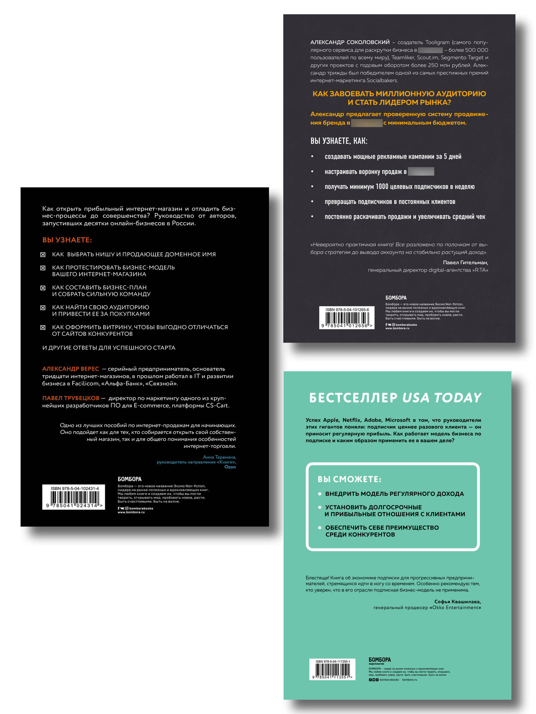 Эти три книги расскажут, как создать крепкий интернет-бизнес и добиться его устойчивого роста. "Ограбление Instagram. Минимум бюджета, максимум прибыли" - проверенная система продвижения бренда в Instagram с минимальным бюджетом от основателя Tooligram, Александра Соколовского. Автор предлагает набора эффективных инструментов для продвижения личного и бизнес-аккаунтов. "Бизнес на подписке. Почему будущее за подписной моделью и как вам ее внедрить" - захватывающее исследование экономики бизнеса по подписке для прогрессивных предпринимателей. Книга объясняет, как устроена подписная модель и каким образом применить ее в своем деле. "Как открыть интернет-магазин. И не закрыть через месяц" - руководство по созданию прибыльного интернет-магазина от авторов, запустивших десятки онлайн-бизнесов в России.Книга поможет составить бизнес-план, собрать сильную команду, найти свою аудиторию и отладить бизнес-процессы до совершенства.| Издательство | ООО "Издательство "Эксмо" |