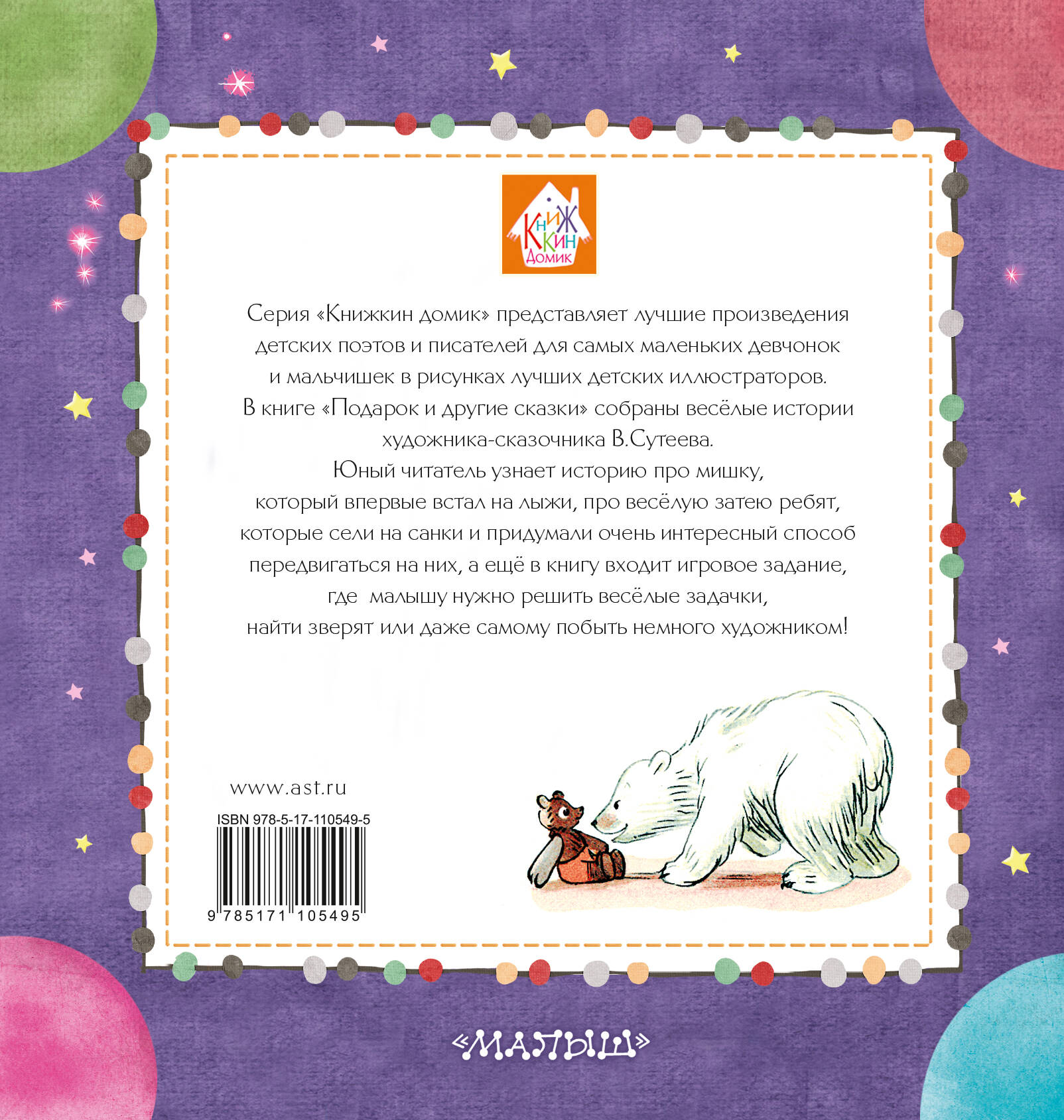 Иллюстрации Владимира Сутеева - его визитная карточка. Всегда узнаваемый почерк художника отличается живостью и динамичностью. В этой книге собраны сказки, которые любят, читают и с удовольствием пересматривают. Живо, броско, а главное - просто и доступно - так умел только Владимир Григорьевич Сутеев, именно поэтому он остаётся любимым художником-сказочником всех читателей! В книге собраны весёлые истории, сказка и игровое задание, над которым малышу придётся поразмыслить: как отыскать спрятанных зверят, что изображено на картинке, решить весёлые задачки. Всё это превратит чтение не только в интересное занятие, но и во время, проведённое с пользой.| Издательство | ИЗДАТЕЛЬСТВО "АСТ" |