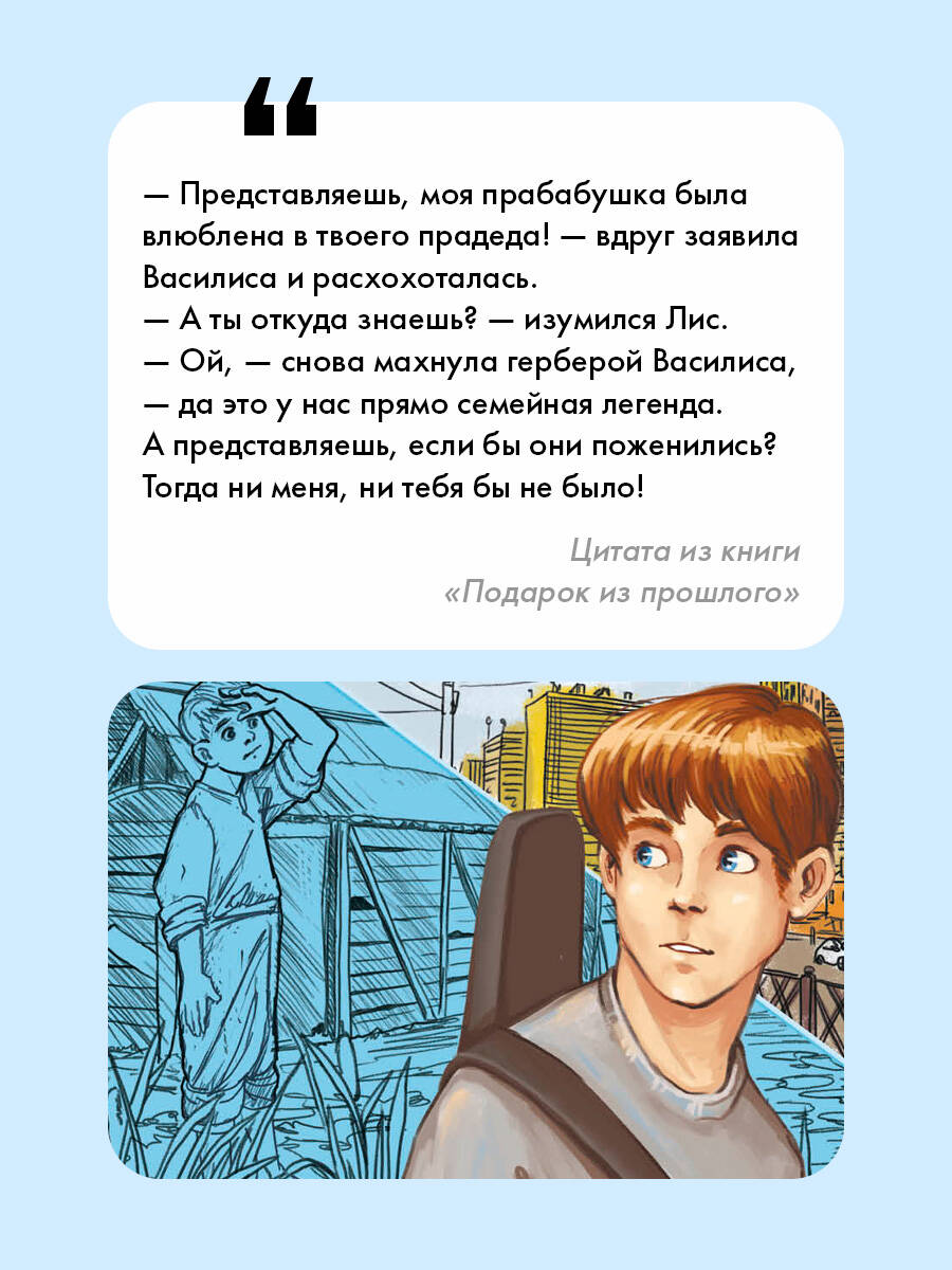 Екатерина Каретникова - автор множества книг для детей и подростков, обладатель литературных премий. Она пишет в разных жанрах, от романов для девочек до детективов. В книге "Подарок из прошлого" Екатерина Каретникова затрагивает тему Великой Отечественной войны. Елисей Колесников, или попросту Лис, - обыкновенный современный подросток. Он учится в школе, играет на гитаре, общается с одноклассниками. Но однажды ему на глаза попадается старый дедушкин альбом с монетами. Вместе с альбомом Лис открывает глубоко запрятанные семейные тайны. И вскоре понимает, как тесно связаны настоящее и прошлое, семья и первая любовь, герои войны и предатели. Для среднего школьного возраста.| Издательство | Издательство "АСТ" |