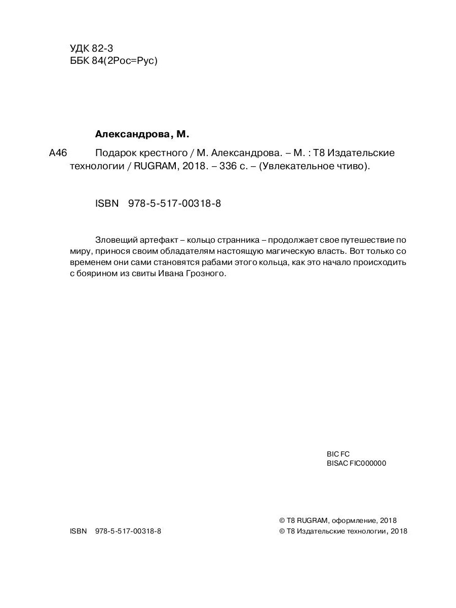 Зловещий артефакт - кольцо странника - продолжает свое путешествие по миру, принося своим обладателям настоящую магическую власть. Вот только со временем они сами становятся рабами этого кольца, как это начало происходить с боярином из свиты Ивана Грозного.| Издательство | Т8 RUGRAM |
