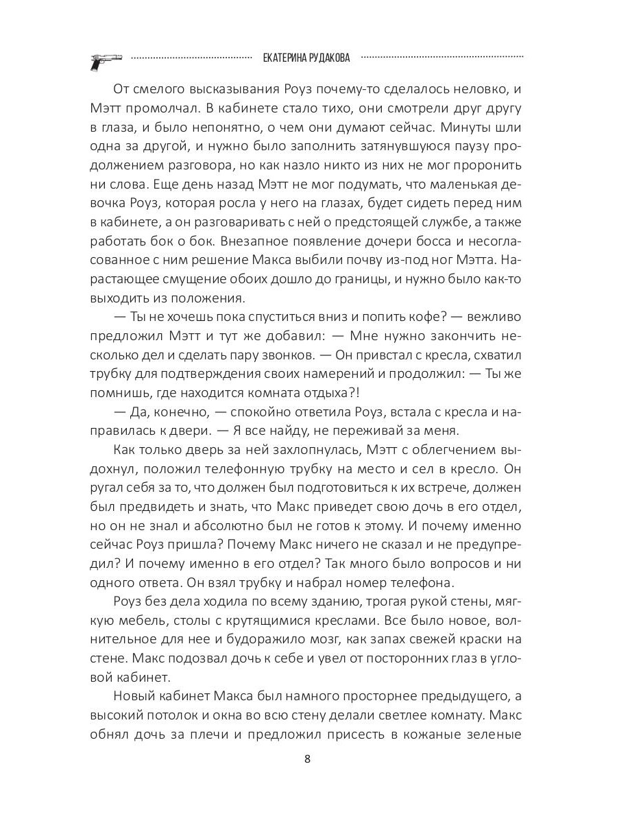 Дочь Макса, Роуз Коен, с самого детства мечтает стать настоящим федеральным агентом и работать в Бюро вместе с отцом. Она верит, что рождена для этой работы и близка к своей цели. Пока не оказывается вместе с любимым парнем в плену у преступника, который жаждет только одного: её смерти! Ей удается избежать участи, задуманной врагом отца, но ценой жизни молодого человека. Роуз придется преодолеть все испытания, боль и разочарование в себе, и воспрянуть духом, набраться сил и опыта, чтобы вновь противостоять злейшему врагу их семьи. И в этом ей готовы помочь: Макс, Джейк и Мэтт. Сможет ли Роуз стать таким же классным агентом, как ее отец?! Или же навсегда останется в тени славы Макса? Она должна будет доказать всем, а главное сильному и беспощадному врагу, что лучшая из лучших.| Издательство | Т8 RUGRAM |