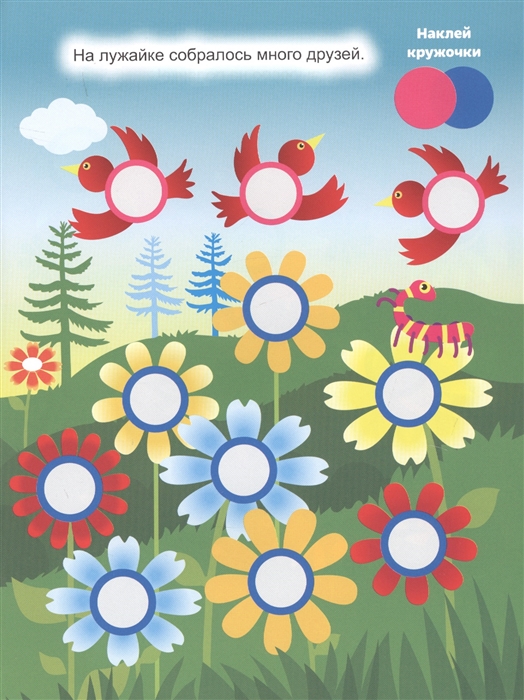 Весёлые герои брошюр с наклейками никому не дадут заскучать. Вместе с ними малыш побывает на арене цирка, прогуляется по берегу речки и по цветочной поляне. Простые и увлекательные задания с наклейками-кружочками направлены не только на развитие мелкой моторики и творческого мышления, но и на изучение цветов.