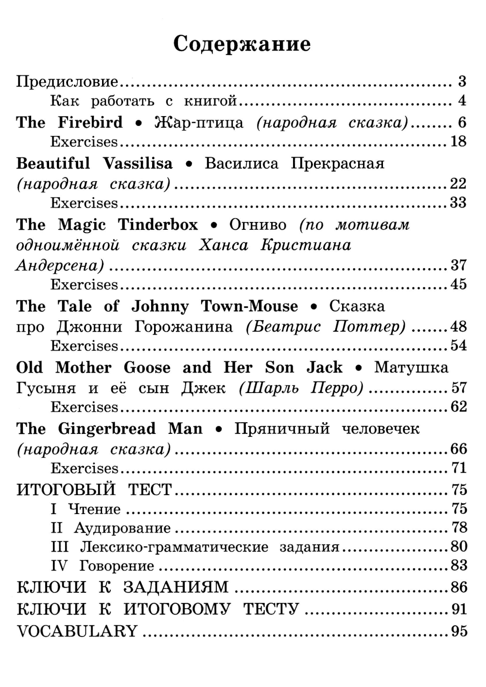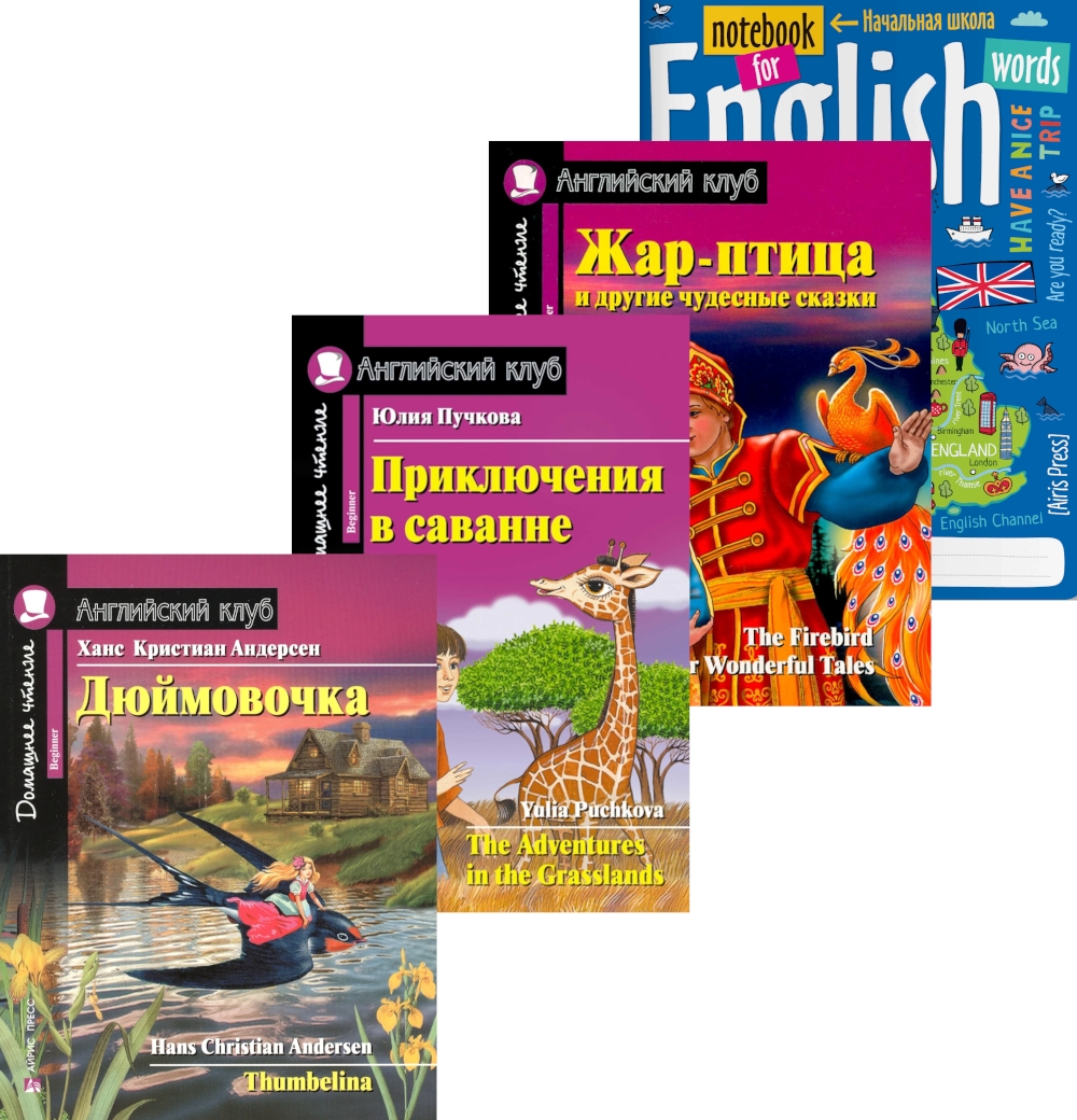 В комплект вошли книги: - Х.К. Андерсен «Дюймовочка»; - Ю. Пучкова «Приключения в саванне»; - «Жар-птица и другие чудесные сказки»; - тетрадь для записи английских слов. После каждой главы следуют комментарий и перевод трудных слов и выражений, а также упражнения, которые учитывают новые требования итоговой аттестации. Они направлены не только на проверку понимания текста, но и на отработку лексики, грамматики, а также развитие умений чтения, аудирования, устной речи, письма. Упражнения имеют разные уровни сложности, что даёт возможность каждому ученику продемонстрировать свой уровень знаний и умений. В конце книг помещён словарь, а также тест в формате итогового экзамена за 4-й класс, включающий задания по аудированию с ответами. Пособия адресованы учащимся 3-4 классов образовательных учреждений, а также широкому кругу лиц, изучающих английский язык.| Издательство | Айрис-пресс* |