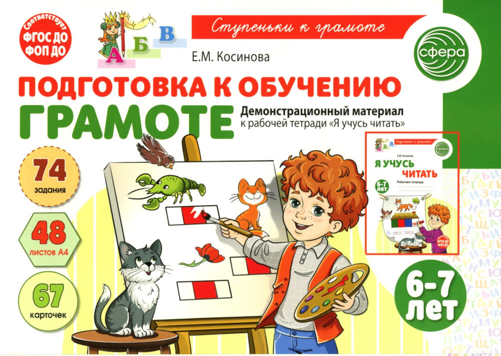 Данный демонстрационный материал является дополнением к рабочей тетради «Я учусь читать» для детей 6-7 лет и входит в серию «Ступеньки к грамоте» (IV ступенька), цель которой - сформировать у дошкольников предпосылки к обучению грамоте на основе аналитико-синтетической активности. Это пособие можно использовать на групповых и подгрупповых занятиях. В его набор входят карточки большого размера с образцами букв и картинками, которые позволяют педагогу продемонстрировать детям, как выполнять задания, представленные в рабочей тетради, и сделать процесс обучения дошкольников более эффективным. Кроме этого в пособии содержатся карточки с материалом для чтения в игровом формате, которые можно использовать как во время занятий, так и после - для закрепления навыка слогослияния и автоматизации слогового чтения. Демонстрационный материал может быть прикреплён к доске или мольберту. В комплект серии «Ступеньки к грамоте» также входит методическое пособие к рабочей тетради «Я учусь читать». В нём представлены сценарии занятий, даны методические рекомендации по их проведению и пояснения к использованию демонстрационного материала.| Издательство | Творческий центр Сфера |