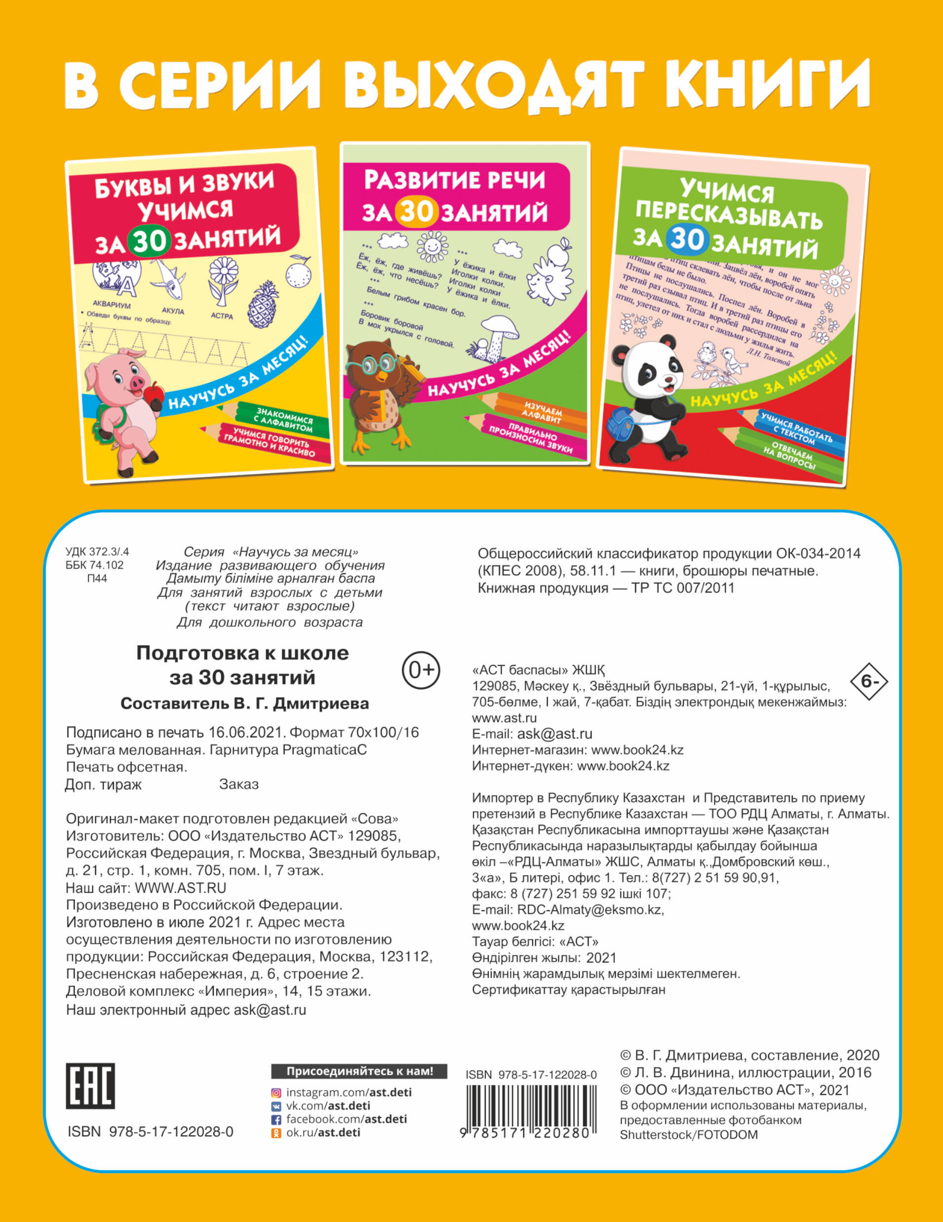 О чем эта книга Пособие поможет ребёнку приобрести все первоначальные сведения, необходимые для успешного начала школьного обучения. Кому эта книга будет интересна Пособие адресовано педагогам и родителям, заинтересованным в успешной подготовке детей к школе. Каковы особенности этой книги • Книга строится по принципу «Одна страница - одно занятие». Обучающий курс рассчитан на 30 занятий. • Это учебное пособие и рабочая тетрадь одновременно - дошкольник обводит и пишет буквы и цифры, учится аккуратно проводить линии и рисовать по образцу. • Занимаясь по книге, ребёнок сможет развить образное и логическое мышление, мелкую моторику и речь. • Выполняя задания, ребенок станет усидчивее, внимательнее и аккуратнее - это очень важно для школьной учебы. • Курс занятий этой книги рассчитан на месяц. Продолжительность одного занятия - 15-20 минут| Издательство | ИЗДАТЕЛЬСТВО "АСТ" |