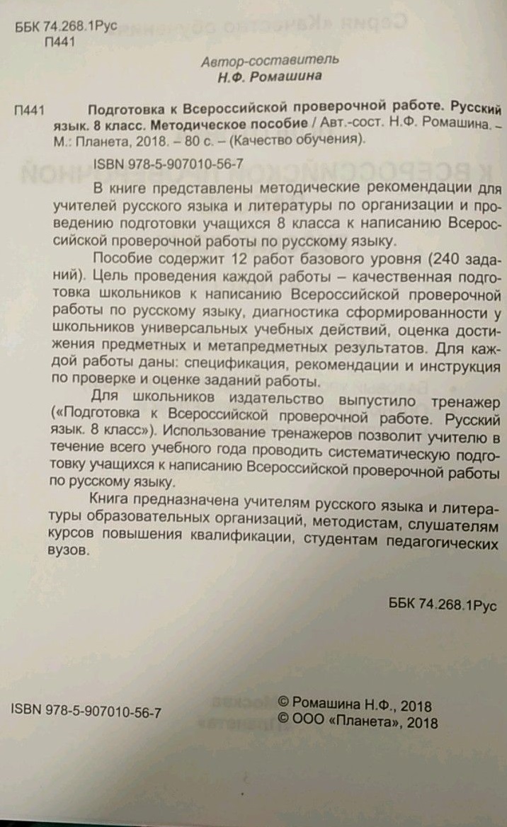 Аннотация: Русский язык. 8 класс. Подготовка к Всероссийской проверочной работе. Методическое пособие