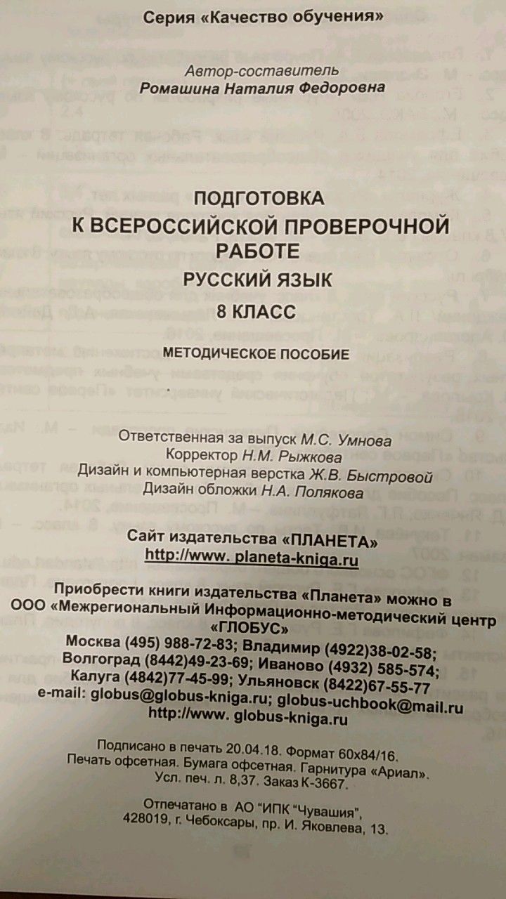 Для школьников издательство выпустило тренажер («Подготовка к Всероссийской проверочной работе. Русский язык. 8 класс»). Использование тренажеров позволит учителю в течение всего учебного года проводить систематическую подготовку учащихся к написанию Всероссийской проверочной работы по русскому языку.