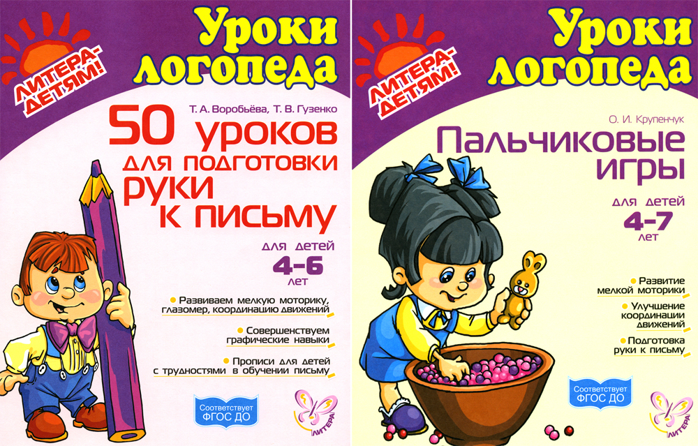 | Кол-во томов | 50 уроков для подготовки руки к письму; Пальчиковые игры |
