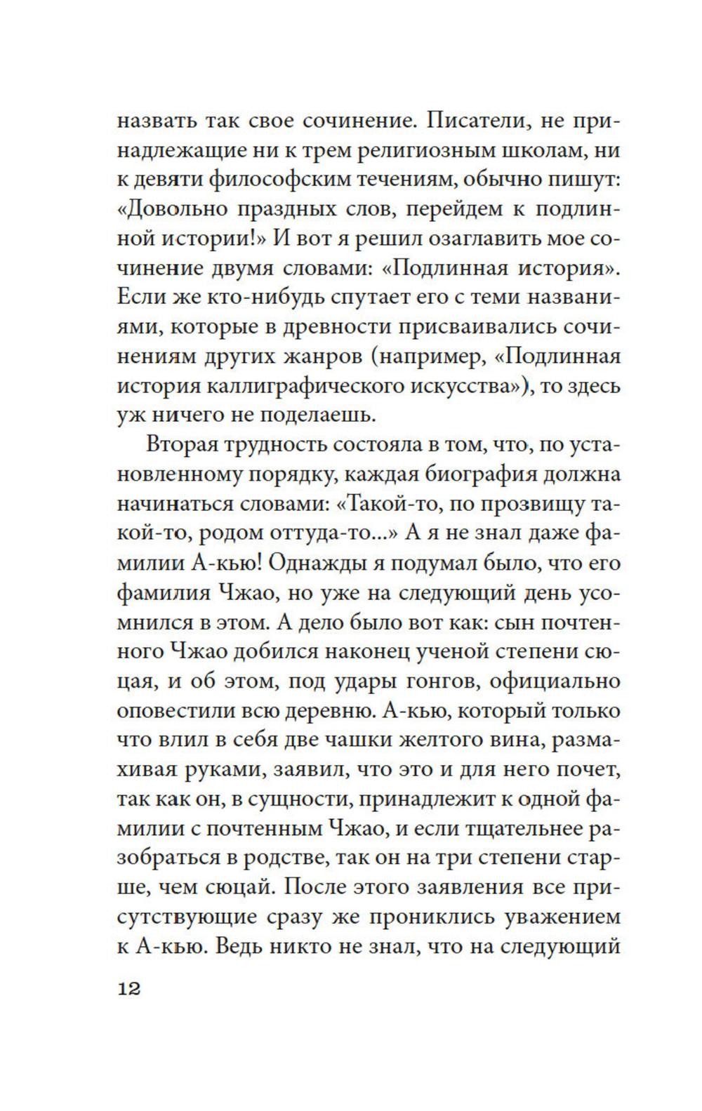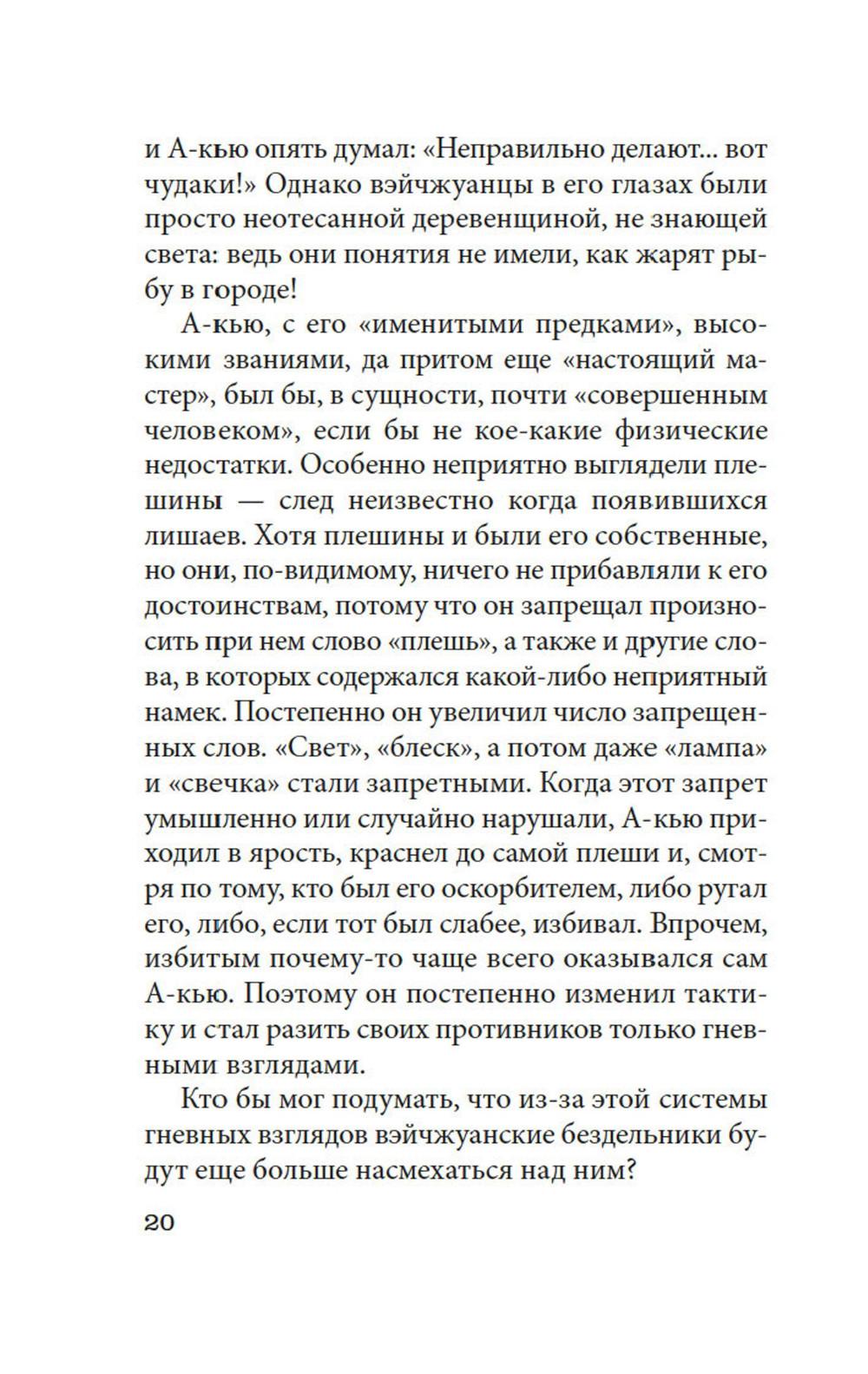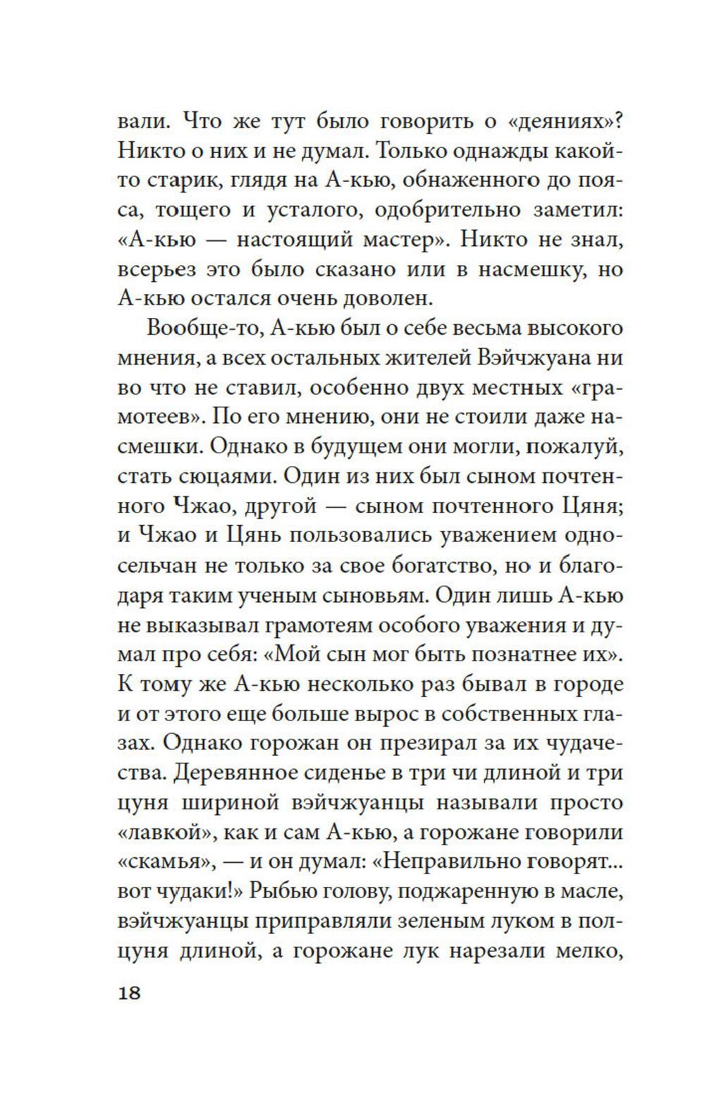 «Подлинная история А-кью» - маленький шедевр китайской литературы начала XX века, первое произведение, в полной мере раскрывающее богатство разговорного китайского языка. Повесть моментально получила международное признание и вывела творчество Лу Синя на мировой уровень. Она была переведена более чем на тридцать языков, вошла в список 100 величайших историй всех времен по версии BBC и стала основой многочисленных адаптаций - драматических постановок, фильмов и даже балетов. Изначально Лу Синь написал эту повесть под псевдонимом «Ба Жэнь» («грубиян»), и впервые она была опубликована в приложении к газете в виде серии рассказов. Особый сатирический эффект достигался контрастом между образом главного героя - обедневшего батрака А-кью, человека совершенно не героического, лицемерного и глуповатого, однако претендующего на «духовное превосходство», - и формой повествования, характерной для классических китайских романов. В настоящем издании «Подлинная история А-кью» выходит с оригинальными иллюстрациями китайского художника-графика Фэн Цзыкая. Помимо заглавной повести, в книгу входят избранные рассказы Лу Синя.| Издательство | Азбука |