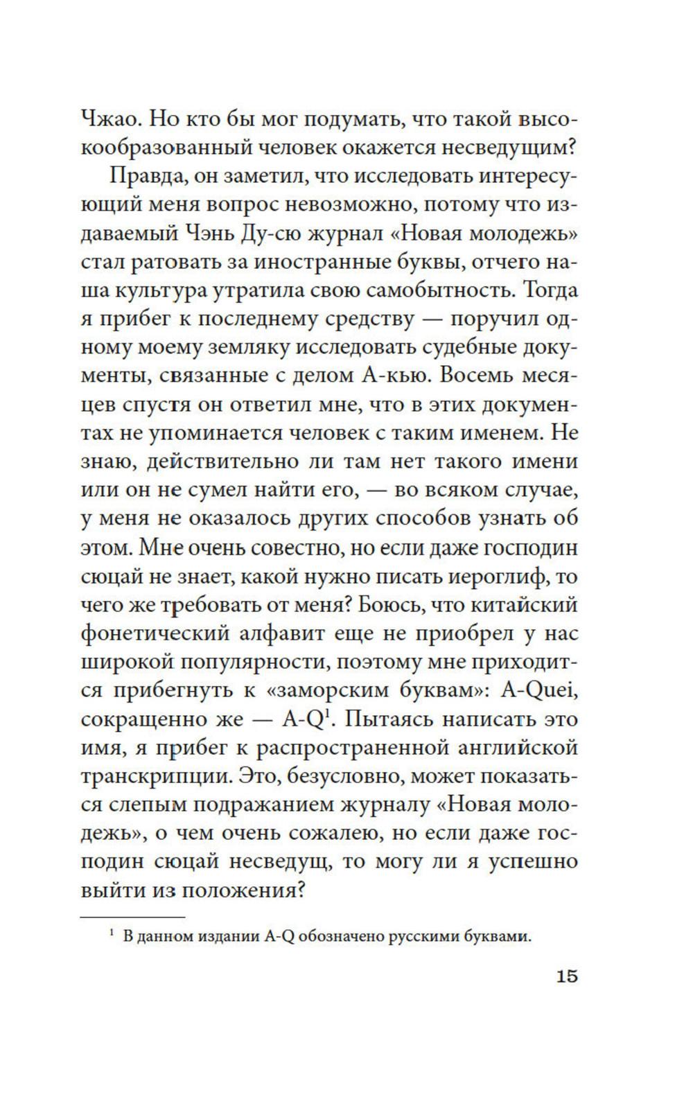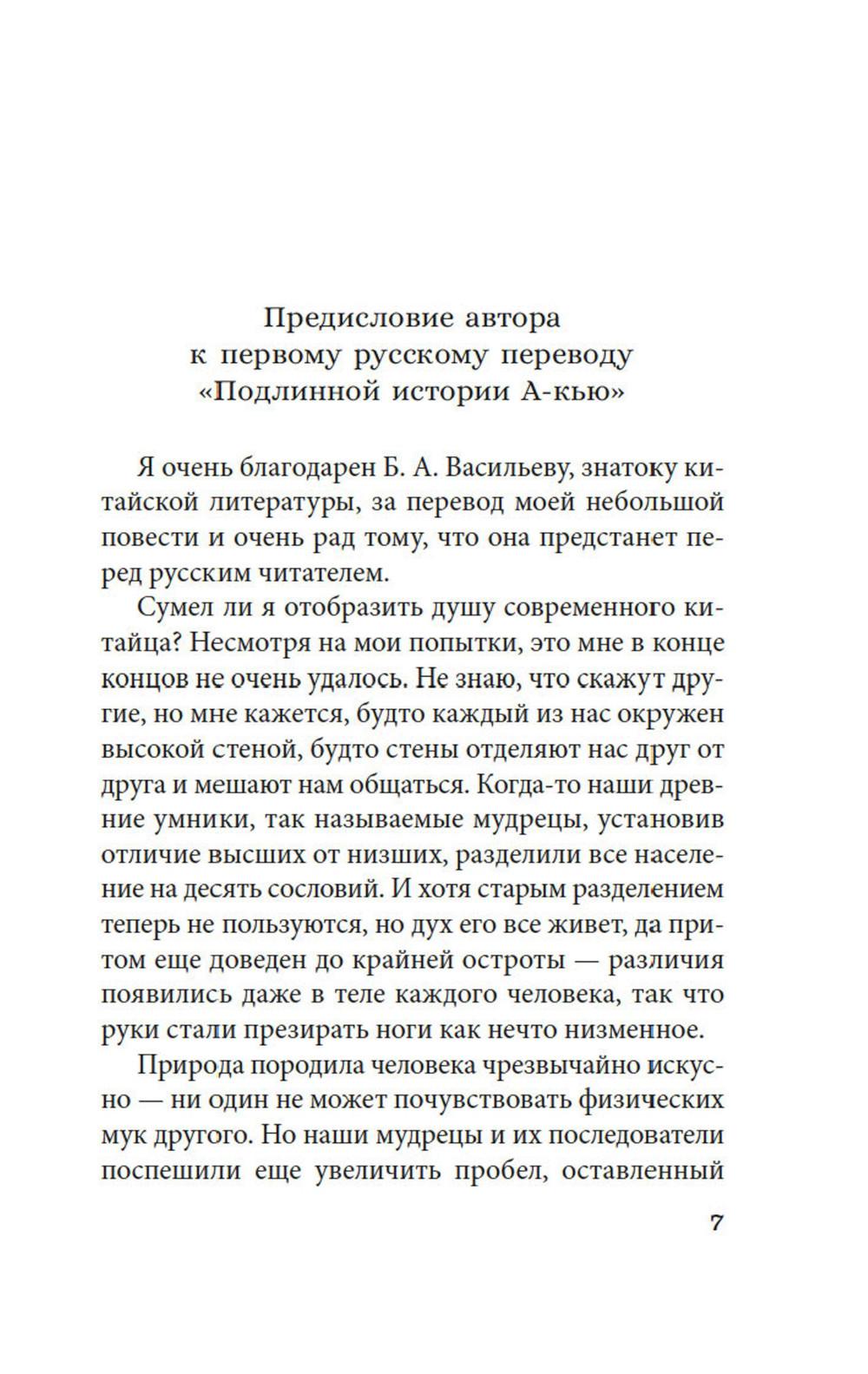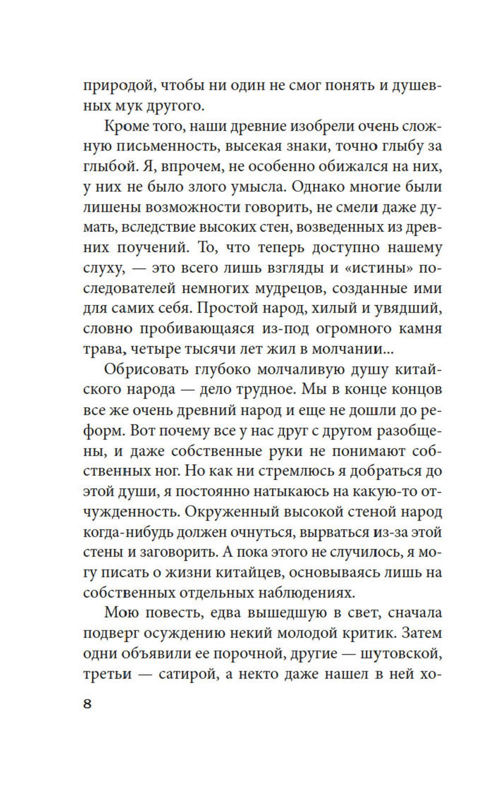 «Подлинная история А-кью» - маленький шедевр китайской литературы начала XX века, первое произведение, в полной мере раскрывающее богатство разговорного китайского языка. Повесть моментально получила международное признание и вывела творчество Лу Синя на мировой уровень. Она была переведена более чем на тридцать языков, вошла в список 100 величайших историй всех времен по версии BBC и стала основой многочисленных адаптаций - драматических постановок, фильмов и даже балетов. Изначально Лу Синь написал эту повесть под псевдонимом «Ба Жэнь» («грубиян»), и впервые она была опубликована в приложении к газете в виде серии рассказов. Особый сатирический эффект достигался контрастом между образом главного героя - обедневшего батрака А-кью, человека совершенно не героического, лицемерного и глуповатого, однако претендующего на «духовное превосходство», - и формой повествования, характерной для классических китайских романов. В настоящем издании «Подлинная история А-кью» выходит с оригинальными иллюстрациями китайского художника-графика Фэн Цзыкая. Помимо заглавной повести, в книгу входят избранные рассказы Лу Синя.| Издательство | Азбука |