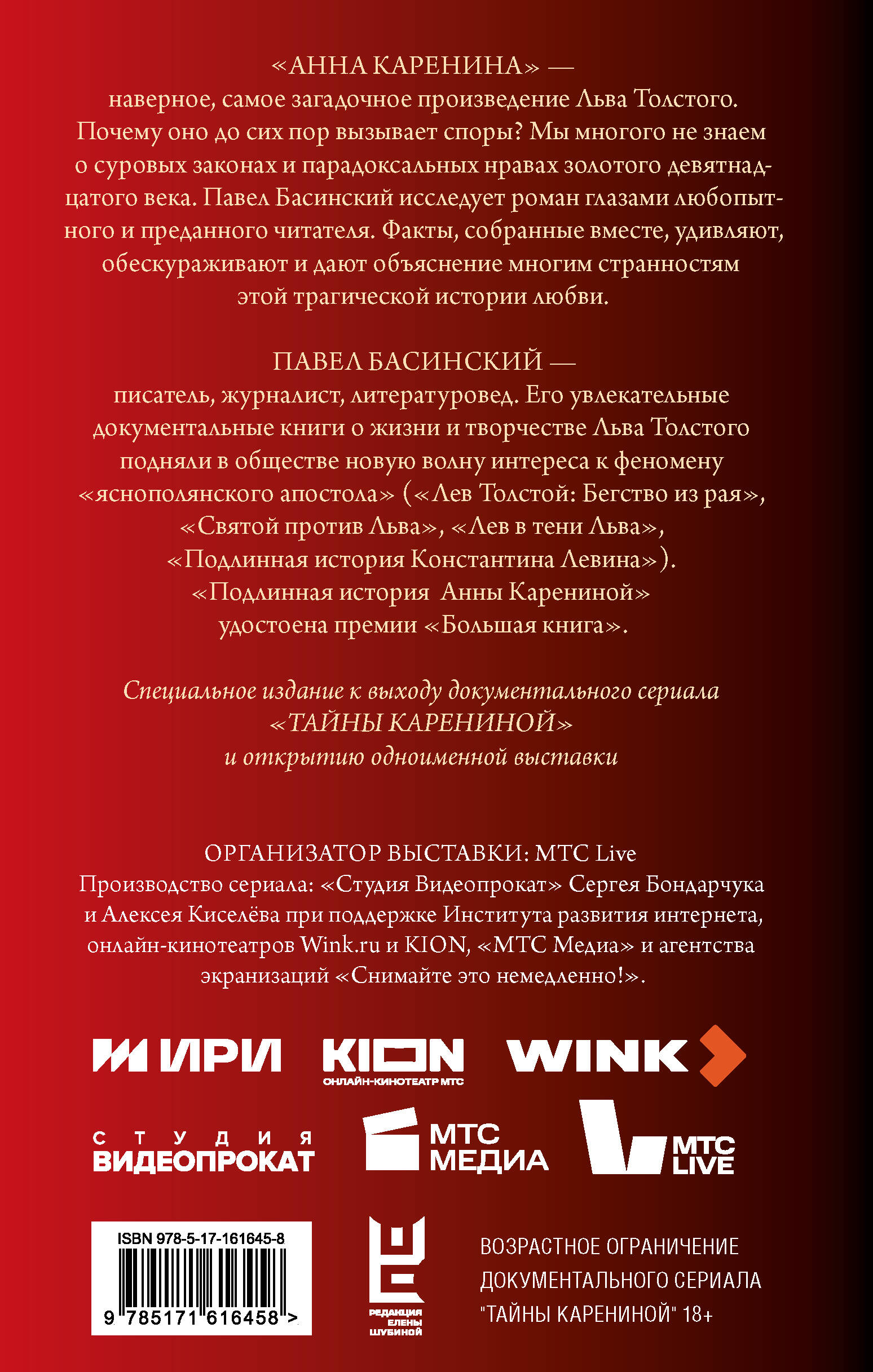 "Анна Каренина" - наверное, самое загадочное произведение Льва Толстого. Почему оно до сих пор вызывает споры? Мы многого не знаем о суровых законах и парадоксальных нравах золотого девятнадцатого века. Павел Басинский исследует роман глазами любопытного и преданного читателя. Факты, собранные вместе, удивляют, обескураживают и дают объяснение многим странностям этой трагической истории любви. Павел Басинский - писатель, журналист, литературовед. Его увлекательные документальные книги о жизни и творчестве Льва Толстого подняли в обществе новую волну интереса к феномену "яснополянского апостола" ("Лев Толстой: Бегство из рая", "Святой против Льва", "Лев в тени Льва", "Подлинная история Константина Левина"). "Подлинная исторния Анны Карениной" удостоена премии "Большая книга". Специальное издание к выходу документального сериала "ТАЙНЫ КАРЕНИНОЙ" и открытию одноименной выставки| Издательство | Издательство "АСТ" |