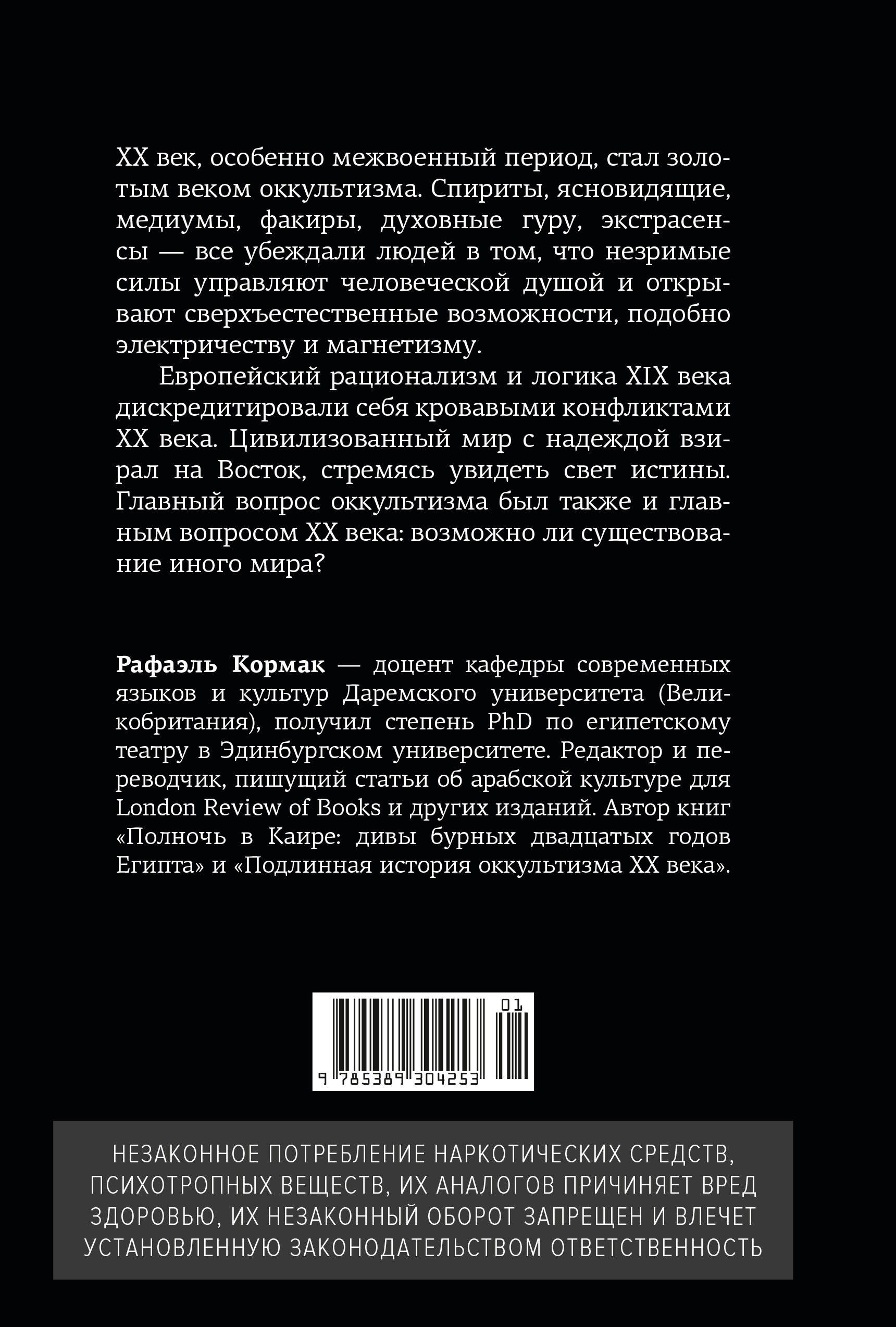 Рафаэль Кормак - доцент кафедры современных языков и культур Даремского университета (Великобритания), получил степень PhD по египетскому театру в Эдинбургском университете. Автор книг, редактор и переводчик, изучающий арабскую культуру. XX век, особенно межвоенный период, стал золотым веком оккультизма. Спириты, ясновидящие, медиумы, факиры, духовные гуру, экстрасенсы - все убеждали людей в том, что незримые силы управляют человеческой душой и открывают сверхъестественные возможности, подобно электричеству и магнетизму. Европейский рационализм и логика XIX века дискредитировали себя кровавыми конфликтами ХХ века. Цивилизованный мир с надеждой взирал на Восток, стремясь увидеть свет истины. Главный вопрос оккультизма был также и главным вопросом ХХ века: возможно ли существование иного мира?