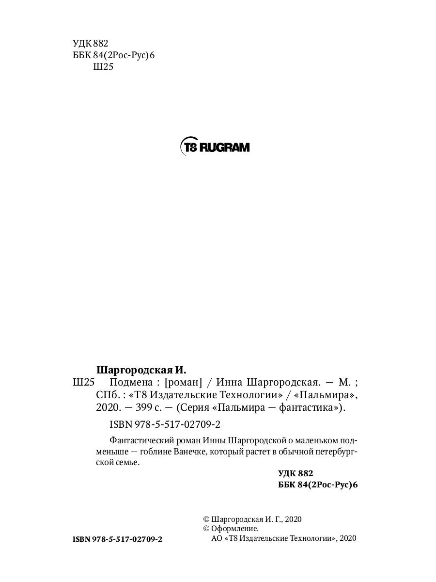 Фантастический роман Инны Шаргородской о маленьком подменыше - гоблине Ванечке, который растет в обычной петербургской семье.| Издательство | Т8 RUGRAM |