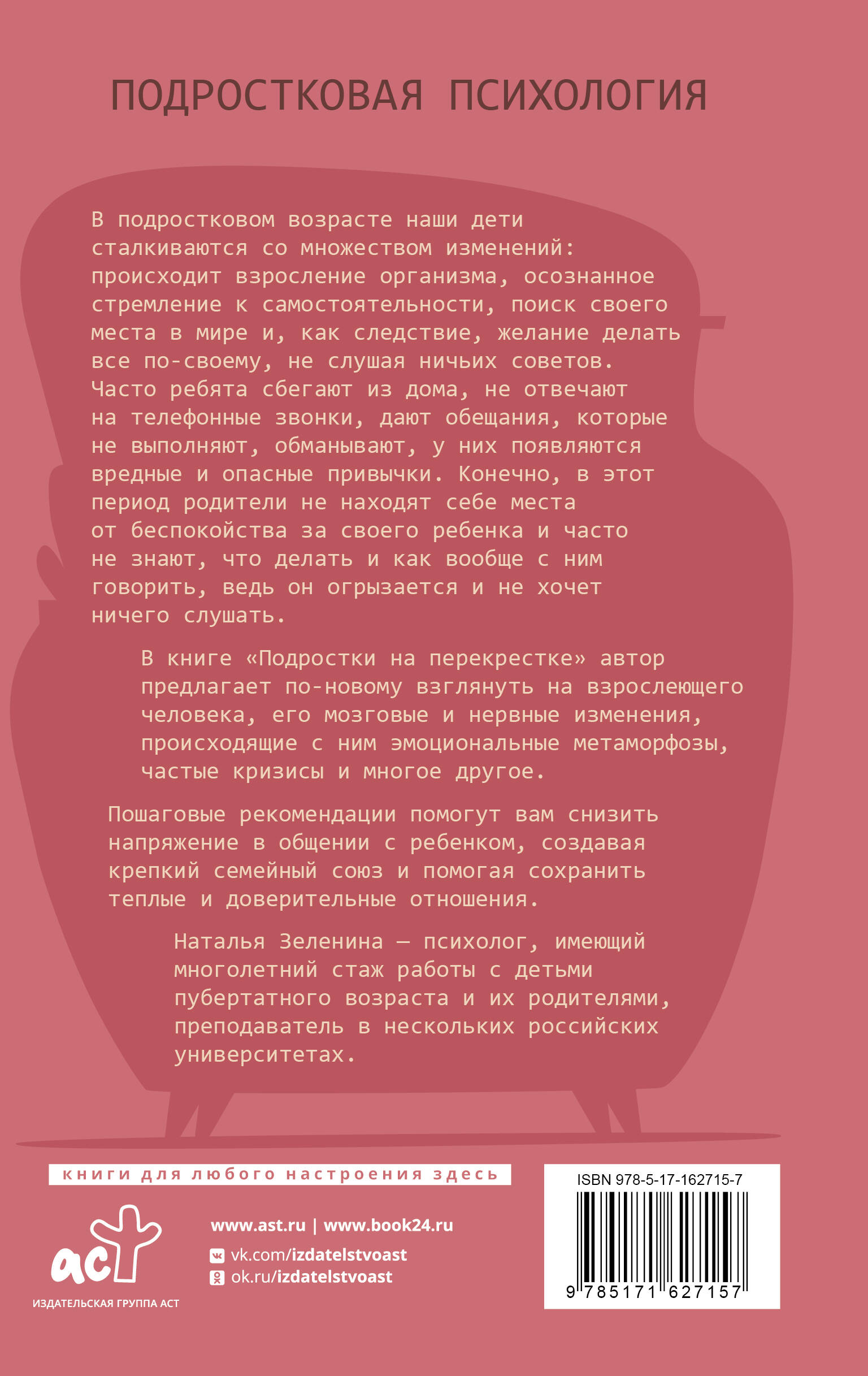 В подростковом возрасте наши дети сталкиваются со множеством изменений: происходит взросление организма, осознанное стремление к самостоятельности, поиск своего места в мире и, как следствие, желание делать все по-своему, не слушая ничьих советов. Часто ребята сбегают из дома, не отвечают на телефонные звонки, дают обещания, которые не выполняют, обманывают, у них появляются вредные и опасные привычки. Конечно, в этот период родители не находят себе места от беспокойства за своего ребенка и часто не знают, что делать и как вообще с ним говорить, ведь он огрызается и не хочет ничего слушать. В книге "Подростки на перекрестке" автор предлагает по-новому взглянуть на взрослеющего человека, его мозговые и нервные изменения, происходящие с ним эмоциональные метаморфозы, частые кризисы и многое другое. Пошаговые рекомендации помогут вам снизить напряжение в общении с ребенком, создавая крепкий семейный союз и помогая сохранить теплые и доверительные отношения. Наталья Зеленина - психолог, имеющий многолетний стаж работы с детьми пубертатного возраста и их родителями, преподаватель в нескольких российских университетах.| Издательство | Издательство "АСТ" |