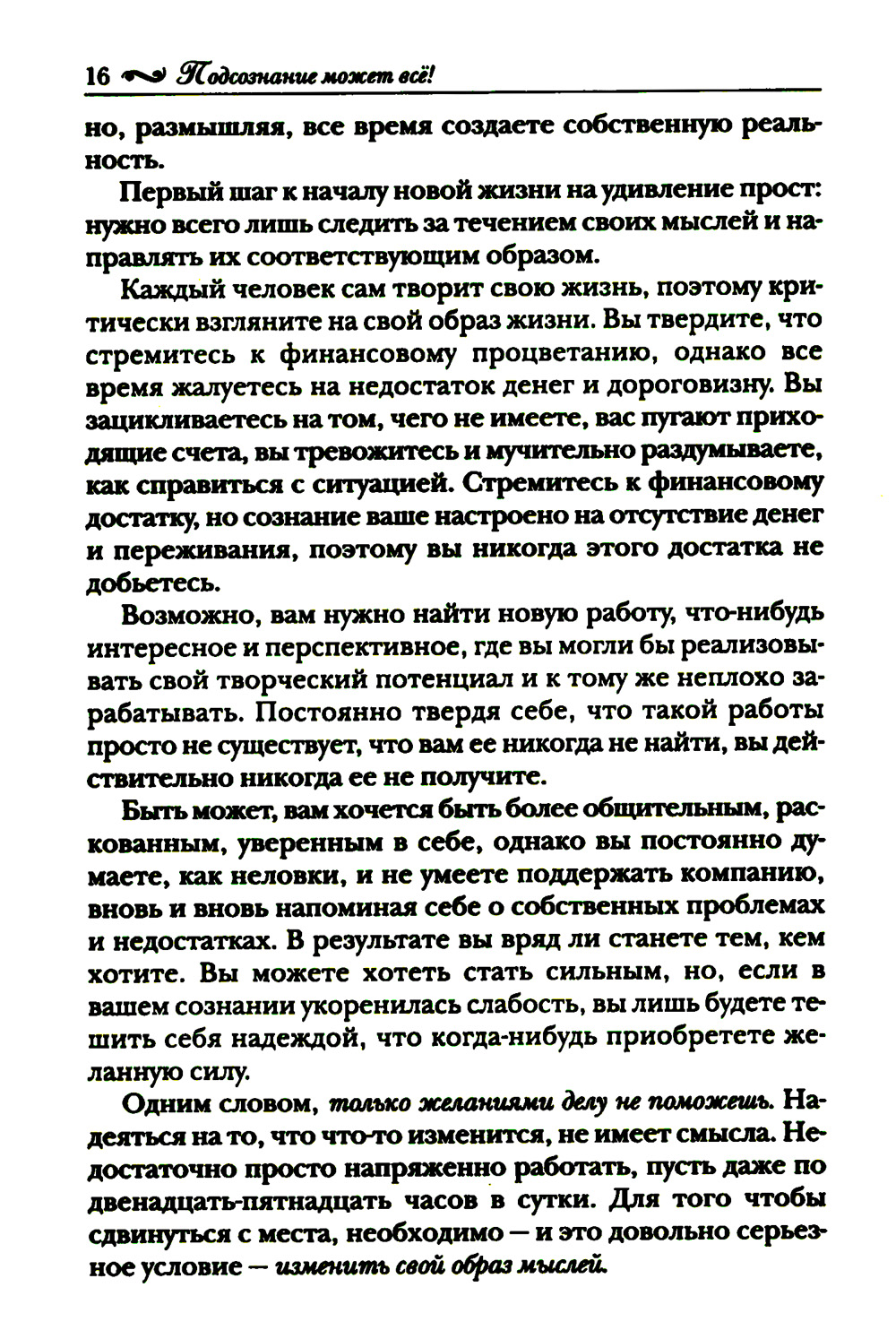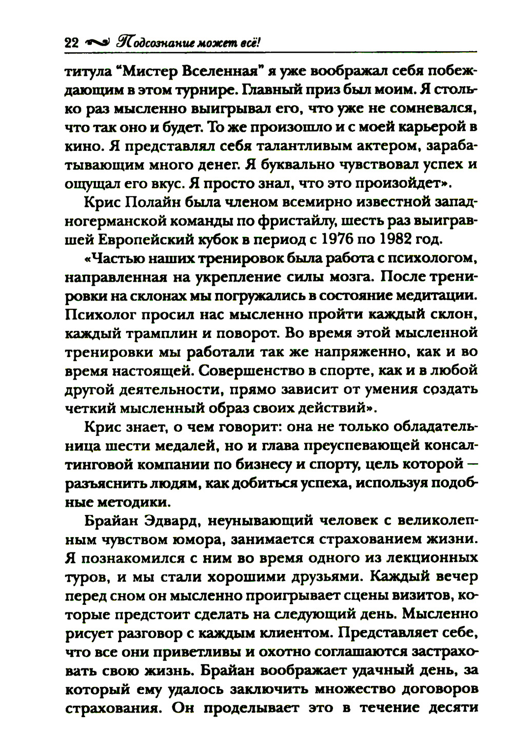 Автор этой книги в уединении среди лесов канадской провинции Британская Колумбия три года сосредоточенно размышлял над вопросами, касающимися деятельности человеческого мозга. Способы активизации его безграничных ресурсов, разработанные Джоном Кехо и скомбинированные им в конкретную программу, помогут вам изменить жизнь к лучшему, наполнить ее успехами и счастьем. Для широкого круга читателей.| Издательство | Попурри |