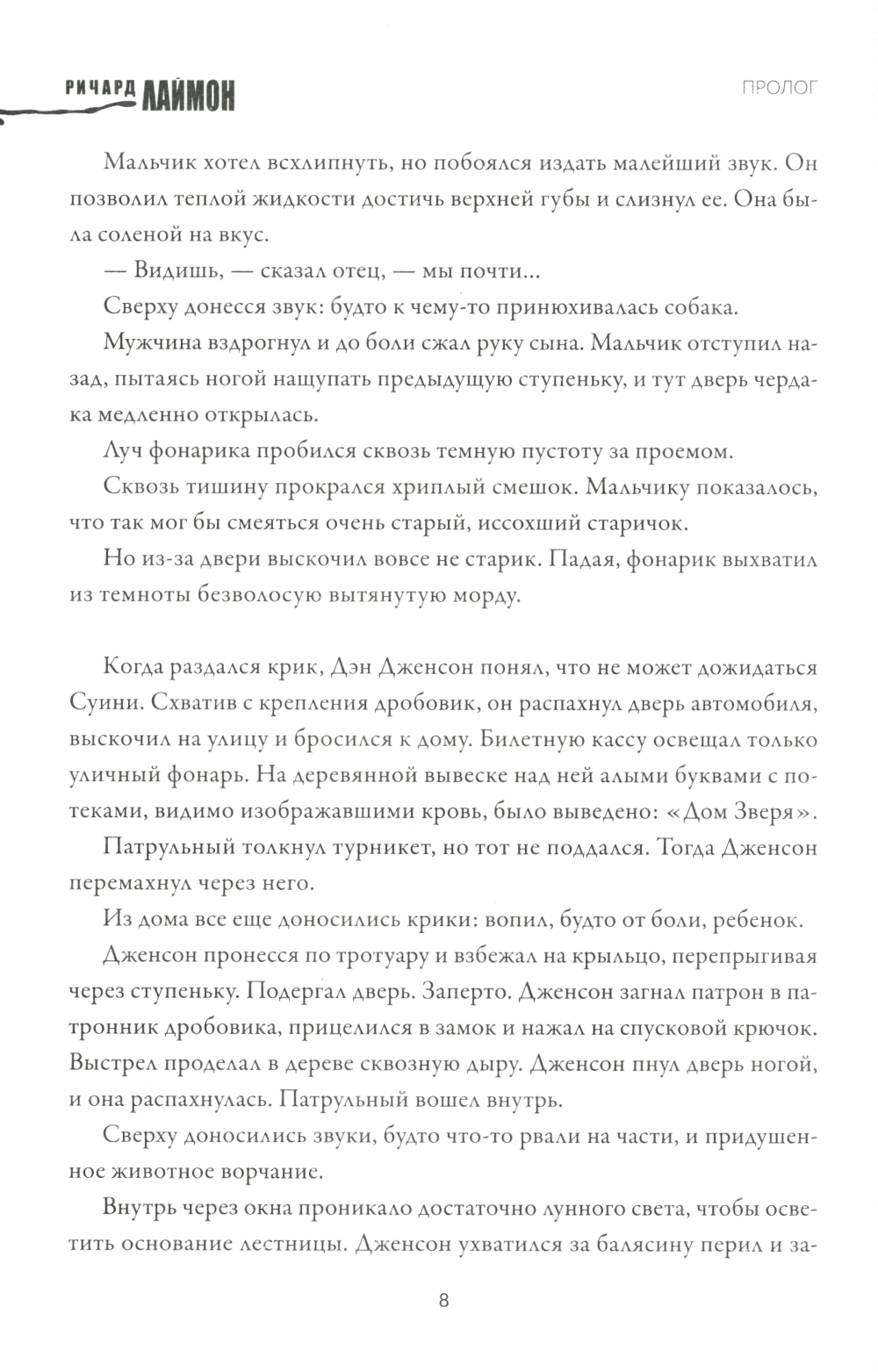 Совершенно заурядный маленький городок на калифорнийском побережье. Его единственная достопримечательность - Дом Зверя, в стенах которого много лет назад произошла ужасная бойня. И пусть «виновные» были пойманы и осуждены, каждый житель городка понимал, что не в человеческих силах совершить подобное. Потому легенды о чудовищных обитателях дома передавались из поколения в поколение. Прошли годы, Дом Зверя из места преступления превратился в аттракцион для любителей острых ощущений со всей страны. Могли ли знать легкомысленные туристы, что на самом деле кроется за древними байками ? И были ли они готовы к тому, что нечеловеческие создания, дьявольски хитрые и сильные, вновь откроют сезон кровавой охоты? Чем глубже герои забираются в Дом Зверя, тем мрачнее становятся кошмары. Но худшее скрывается под проклятым зданием. Даже не думайте заглядывать в подвал...| Издательство | Феникс |