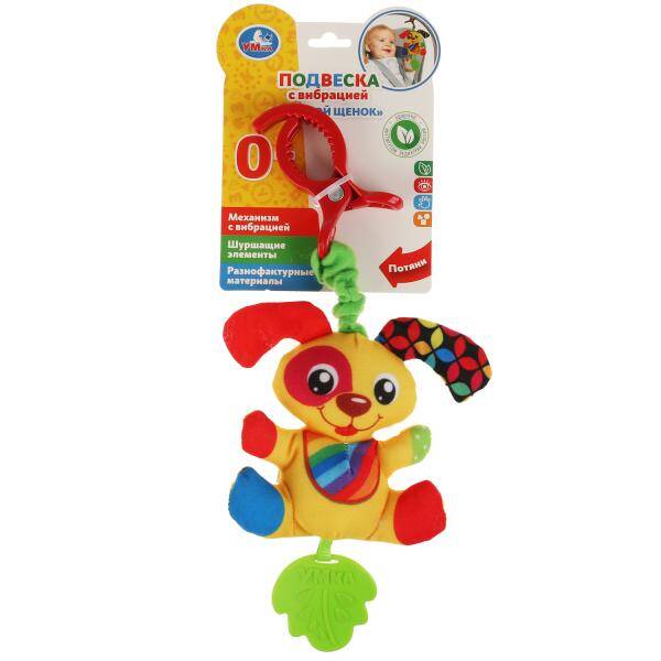 Игрушка-подвеска "Озорной щенок" ТМ "УМка" разработана специально для малышей: - удобное крепление-клипса - прорезыватель в форме листочка - шуршащие элементы - гремящие шарики - разнофактурные материалы - БЕЗ ВИБРАЦИОННОГО МЕХАНИЗМА Эта игрушка в виде милого щенка непременно приведёт ребёнка в восторг. Подвеска выполнена в ярких цветах из очень мягкого и гипоаллергенного материала. Благодаря креплению-клипсе игрушку удобно присоединять к кроватке, коляске или дуге. Прорезыватель интересной формы из качественного безопасного материала пригодится малышу, когда у него будут резаться зубки. Игра с подвеской ТМ "УМка" развивает: - слуховое восприятие - тактильные навыки - моторику - цветовосприятие Размер упаковки: 3 х 11 х 15 см. Материал: пластмасса + текстиль. Рекомендовано детям раннего ясельного возраста.| Издательство | С-Маркет ООО |