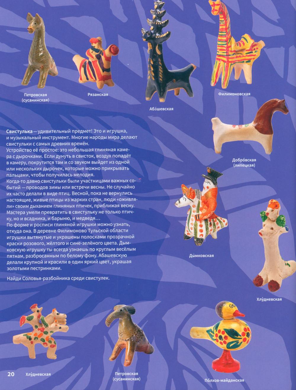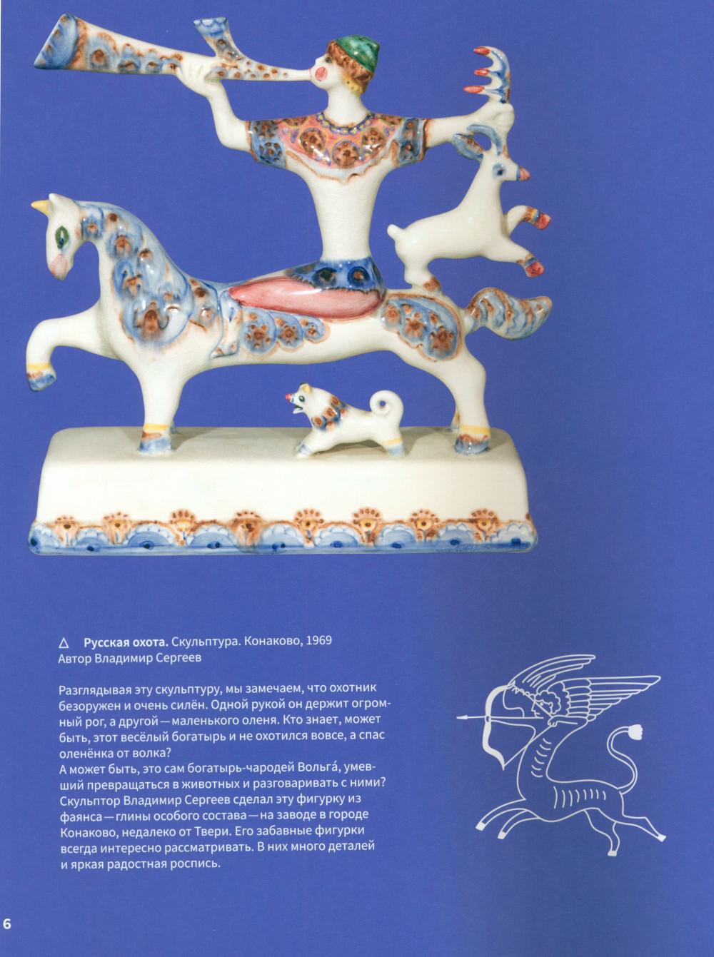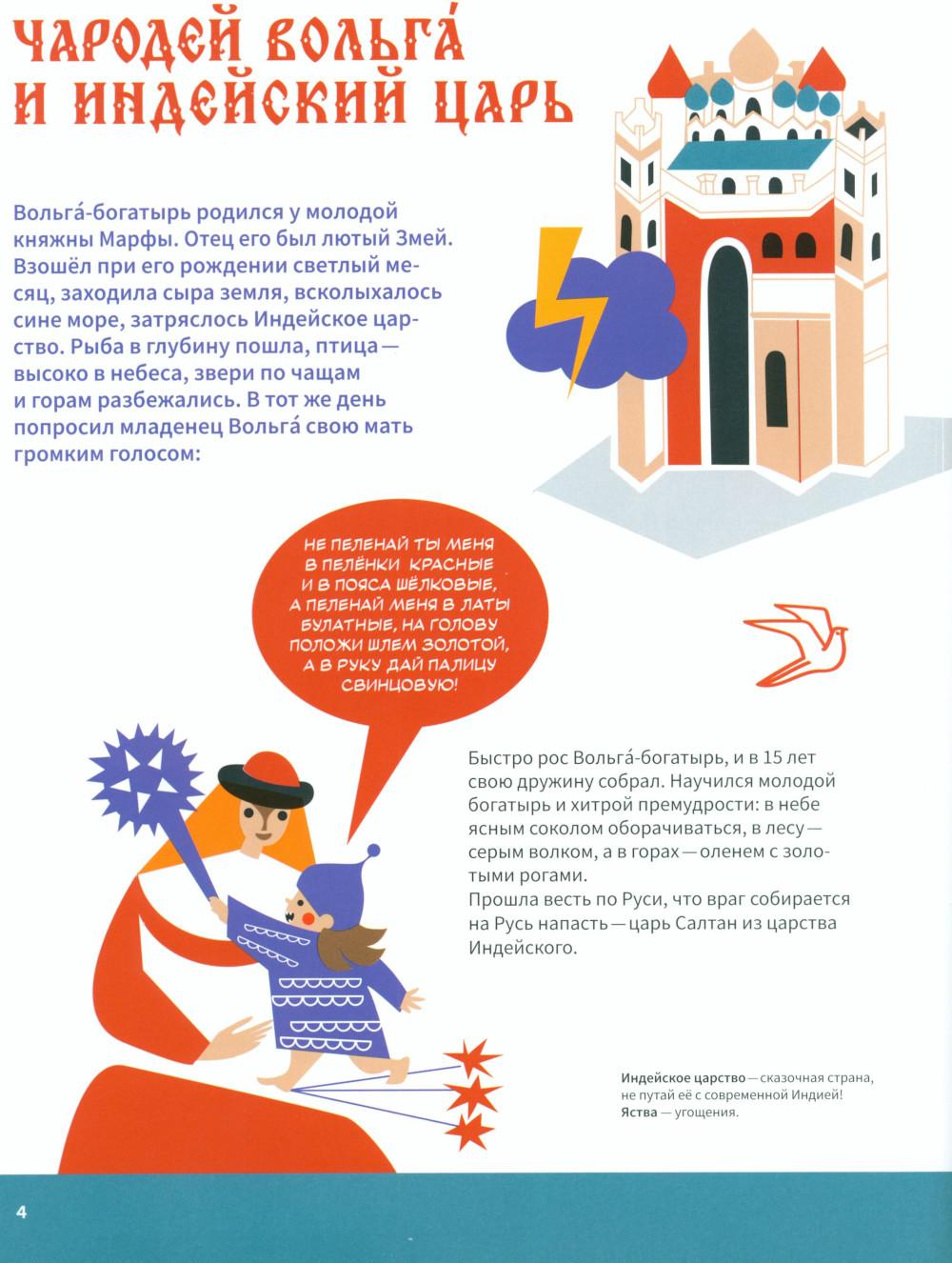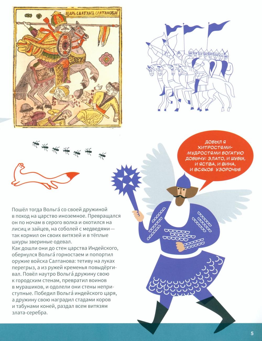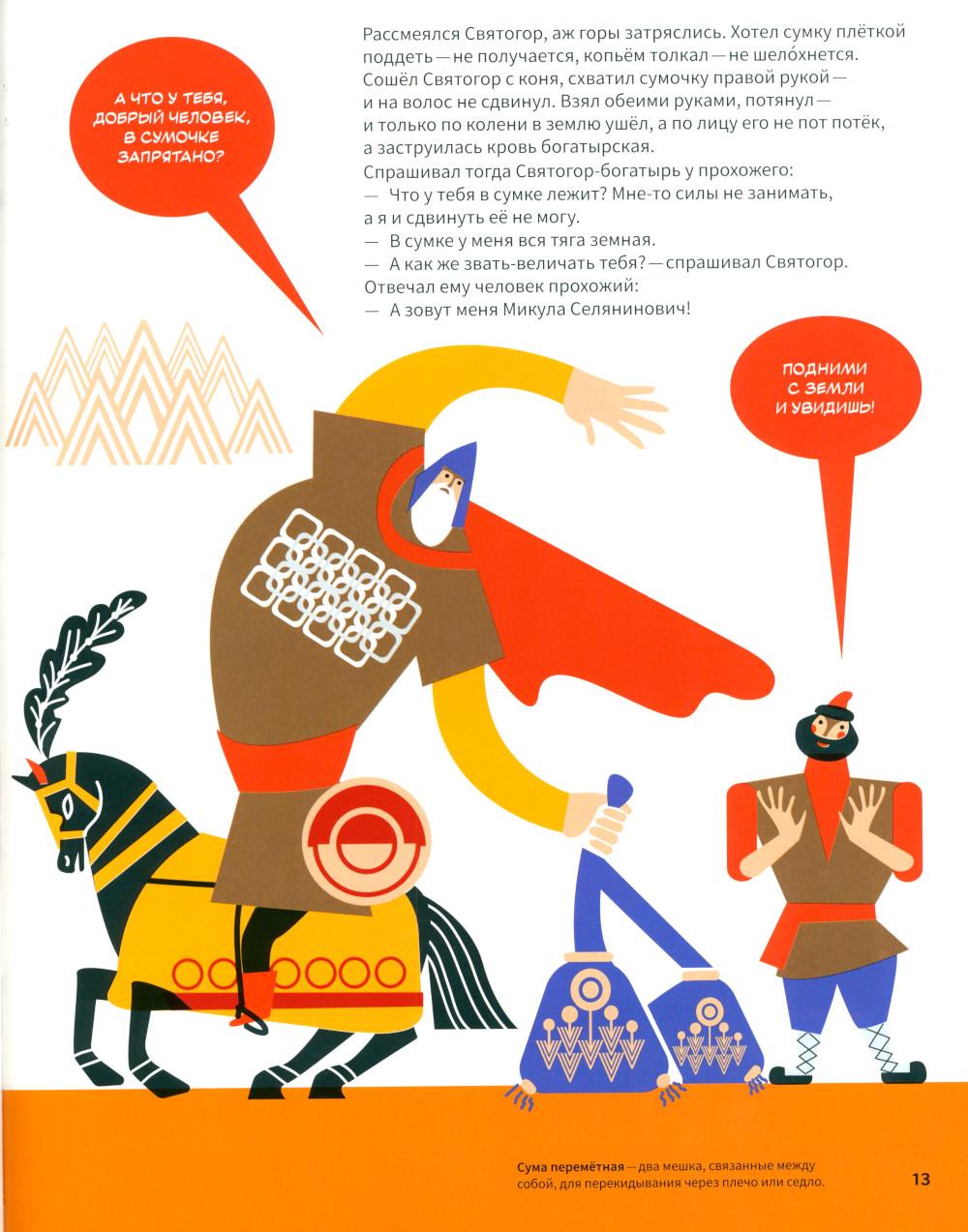 Эта книга про Древнюю Русь и старинные времена, когда народом русским правили князья, а по полям разъезжали богатыри, которые защищали Русскую землю от врагов и страшных змеев. Самые древние герои былин -Вольга, Святогор и Микула -были мифическими богатырями, они могли управлять стихиями природы и превращаться в волшебных зверей. Много славных подвигов совершили богатыри Илья, Добрыня и Алёша. Имена этих молодцев встречаются в летописях, легендах и исторических песнях. Они служили князю Владимиру по прозванию Красно Солнышко, который крестил Русь. Были на Руси и женщины-богатырши-Василиса и Настасья. Защитили и прославили родную землю также князья-полководцы. Александр Невский победил огромное войско на Ледовом побоище у Новгорода, а князь московский Дмитрий Донской одолел врага на Куликовом поле. Русские богатыри -сильные и смелые, находчивые и смекалистые -вдохновляли не только сказителей былин. Писатели сочиняли о них повести и сказки, композиторы писали оперы, художники изображали их на картинах и в скульптурах. Всех героев, и сказочных, и реальных, можно найти на этих страницах. Для тебя их нарисовал художник книги. В Музее декоративного искусства богатыри изображены на предметах из дерева, металла, глины, стекла и тканей. На выставках в музее ты найдёшь всё, что тебе понравится в книге: на чашках, кубках, шкатулках, в фарфоровых и глиняных статуэтках, свистульках и деревянных игрушках.| Издательство | Изд.Арт-Волхонка |