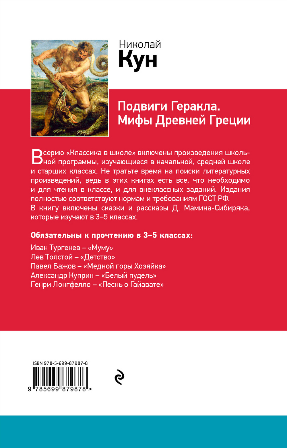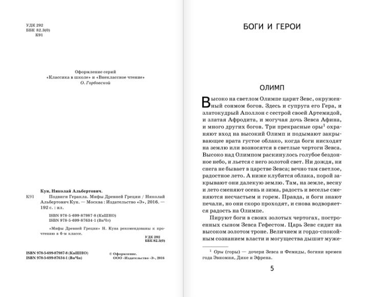 "Мифы Древней Греции" Н. Куна рекомендованы к прочтению в 6 классе.