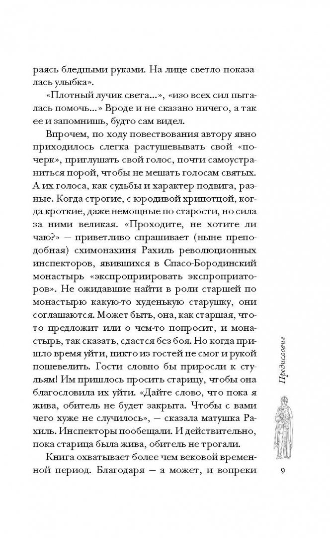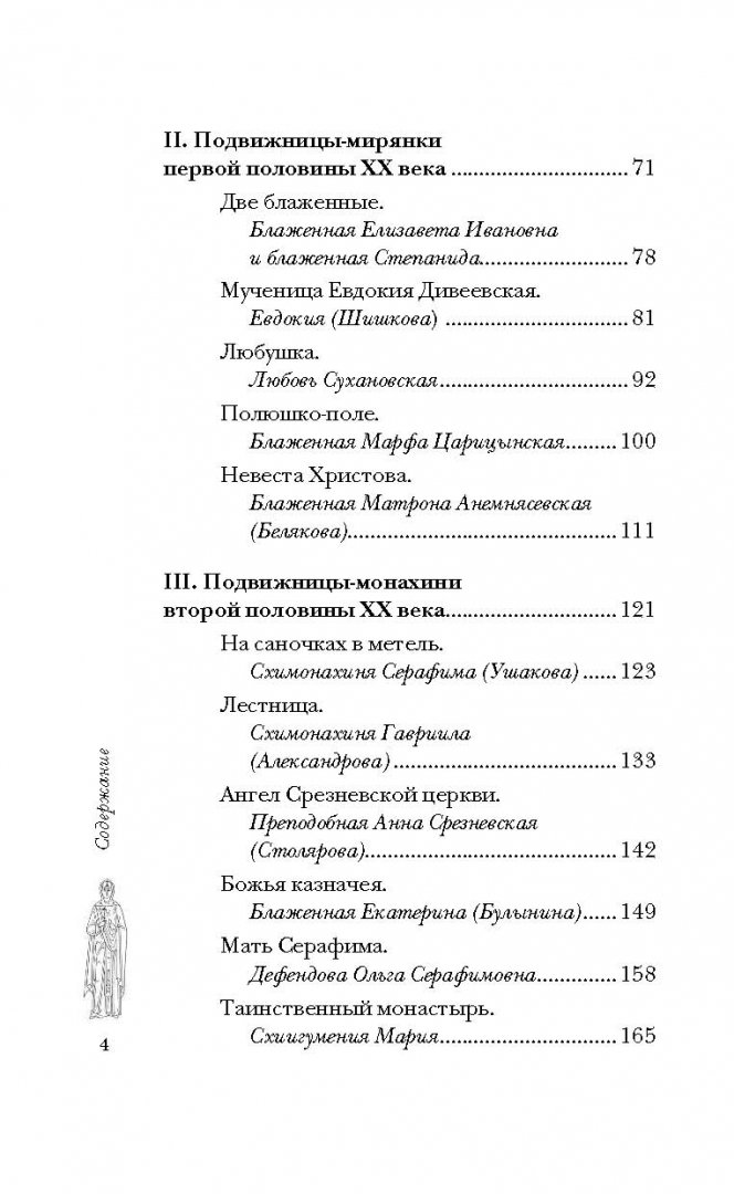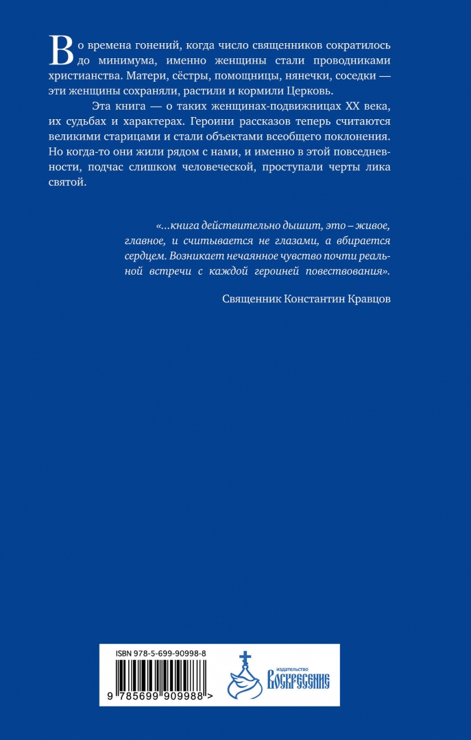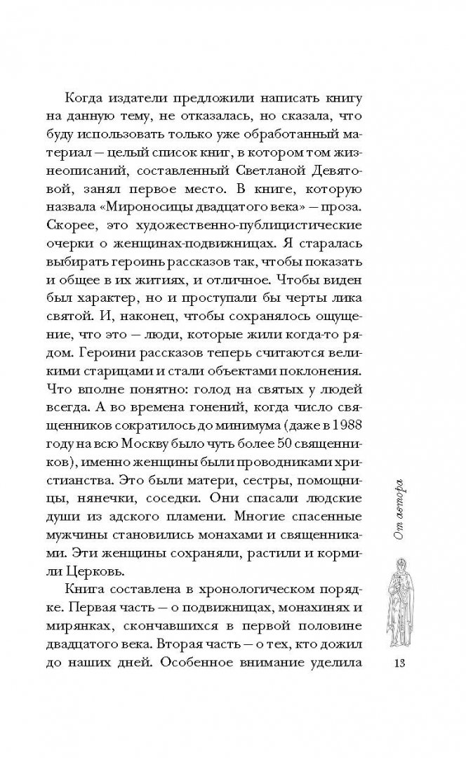 Эта книга - о таких женщинах-подвижницах ХХ века, их судьбах и характерах. Героини рассказов теперь считаются великими старицами и стали объектами всеобщего поклонения. Но когда-то они жили рядом с нами, и именно в этой повседневности, подчас слишком человеческой, проступали черты лика святой.