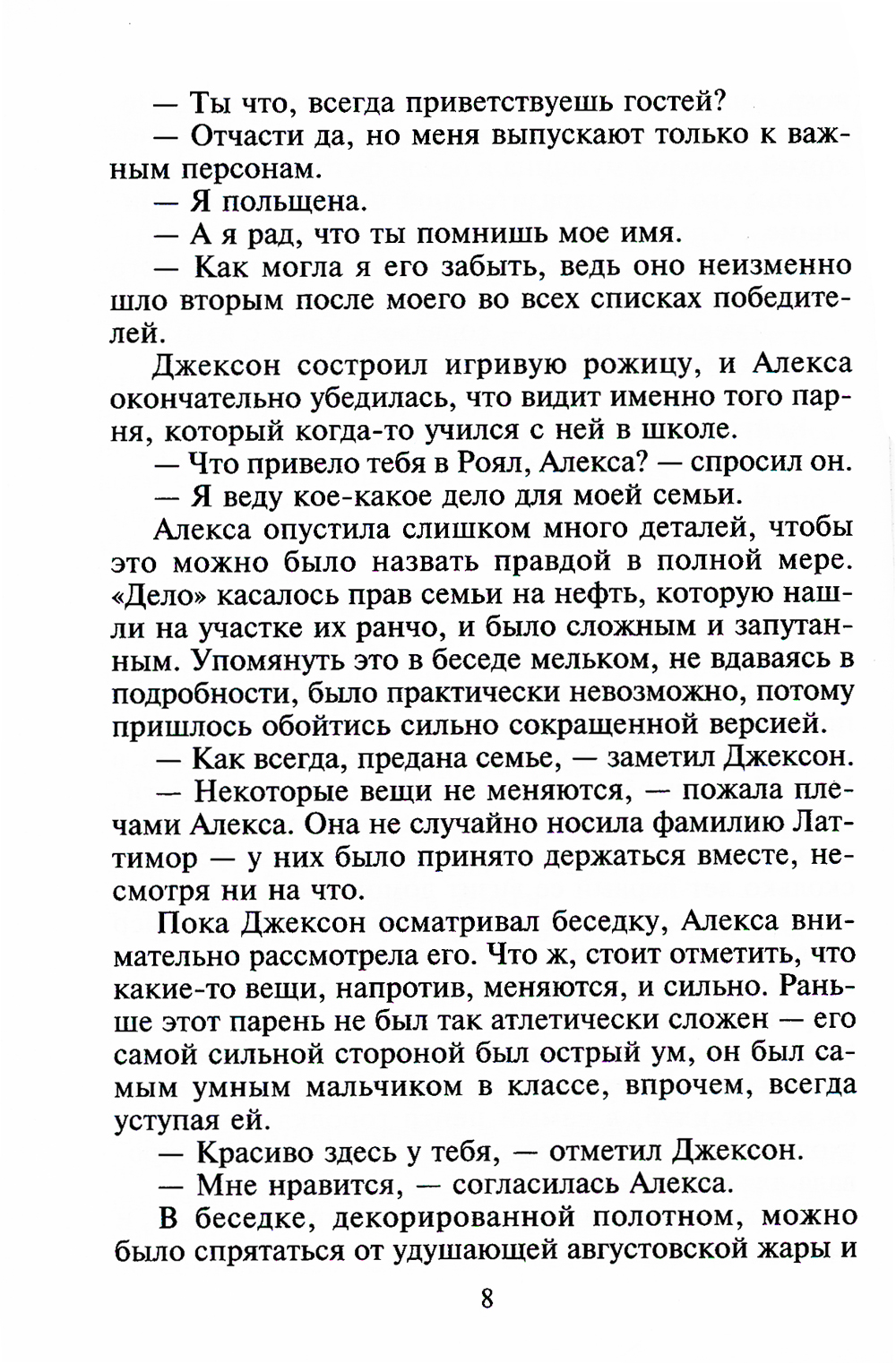 Александра Латтимор - преуспевающий юрист в крупной компании, возвращается в родной городок, чтобы проведать семью и помочь им в сложном деле. На благотворительной вечеринке Алекса внезапно встречает Джексона, парня, с которым в школе ее связывали непростые отношения. Его интерес к ней, похоже, не угас за долгие годы, - стоит ли дать шанс старым чувствам?..| Издательство | Центрполиграф |